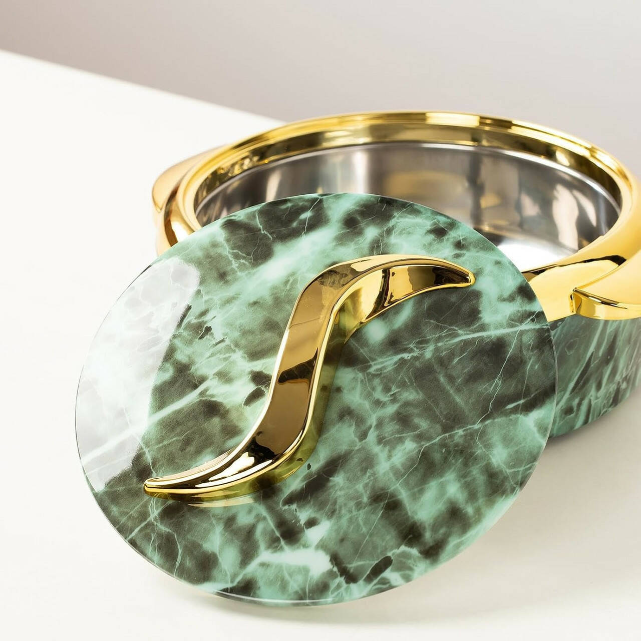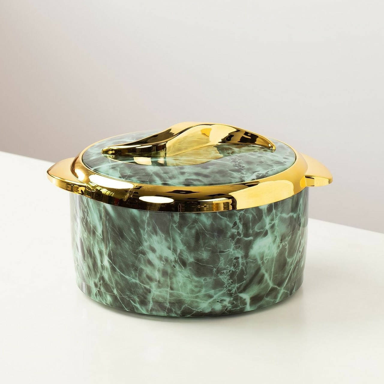 мармуровим візерунком і декоративною золотистою окантовкою надає