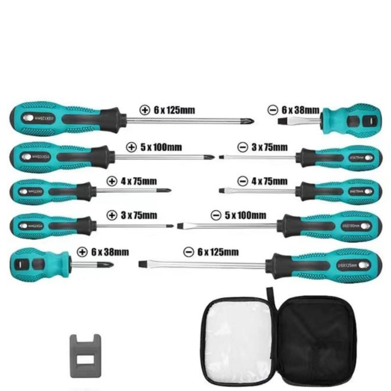 Набір викруток 10 штук для ремонту в прозорому чохлі на блискавці, намагнічені для побутового та професійного використання