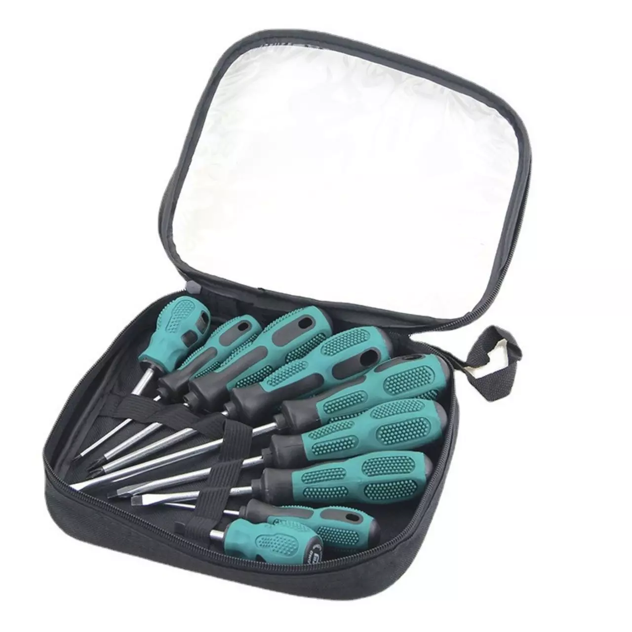 У комплект входять хрестові та шліцеві викрутки різних розмірів, що дозволяє підібрати оптимальний інструмент для будь-яких кріпильних елементів. Магнітні наконечники забезпечують надійну фіксацію шурупів і гвинтів, спрощуючи роботу та запобігаючи їх випадінню.