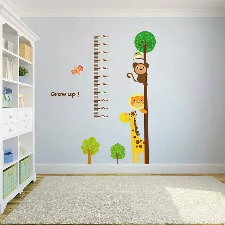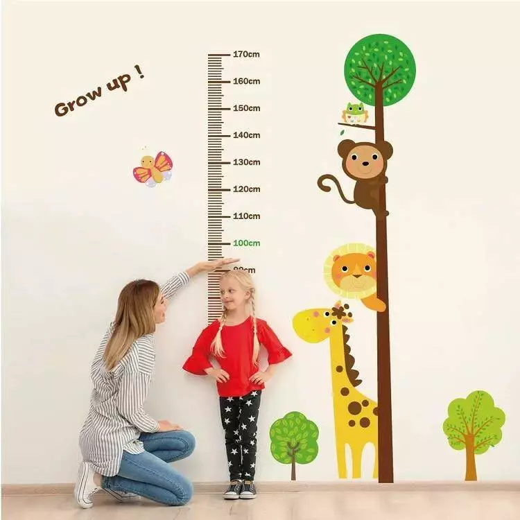 Ці наклейки не тільки прикрашають стіни, а й дають змогу стежити за ростом вашого малюка завдяки вбудованій шкалі до 170 см. Напис «Grow up» надихає дитину на досягнення нових висот, додаючи мотивацію і задоволення від використання декору. Високе дерево і жираф створюють тематичний акцент, який ідеально підійде для юних любителів тварин і природи.