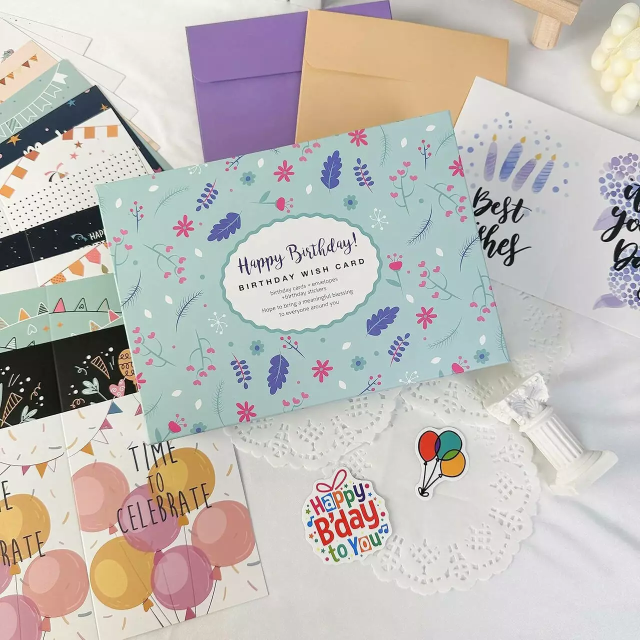 Набір вітальних листівок, 50 шт., святковий комплект «Happy Birthday», листівки для привітань з днем народження