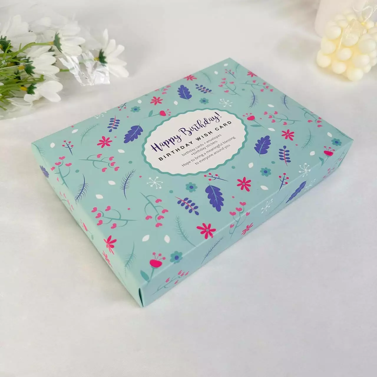 Листівки акуратно упаковані в красиву коробку, що зручно для зберігання та ідеально підходить як подарунок. У комплект також входять конверти та стікери, завдяки чому ви одразу отримуєте все необхідне для оформлення та відправки привітань. Чудово підходить для днів народження, свят, вечірок, а також як універсальний набір листівок на всі випадки життя.