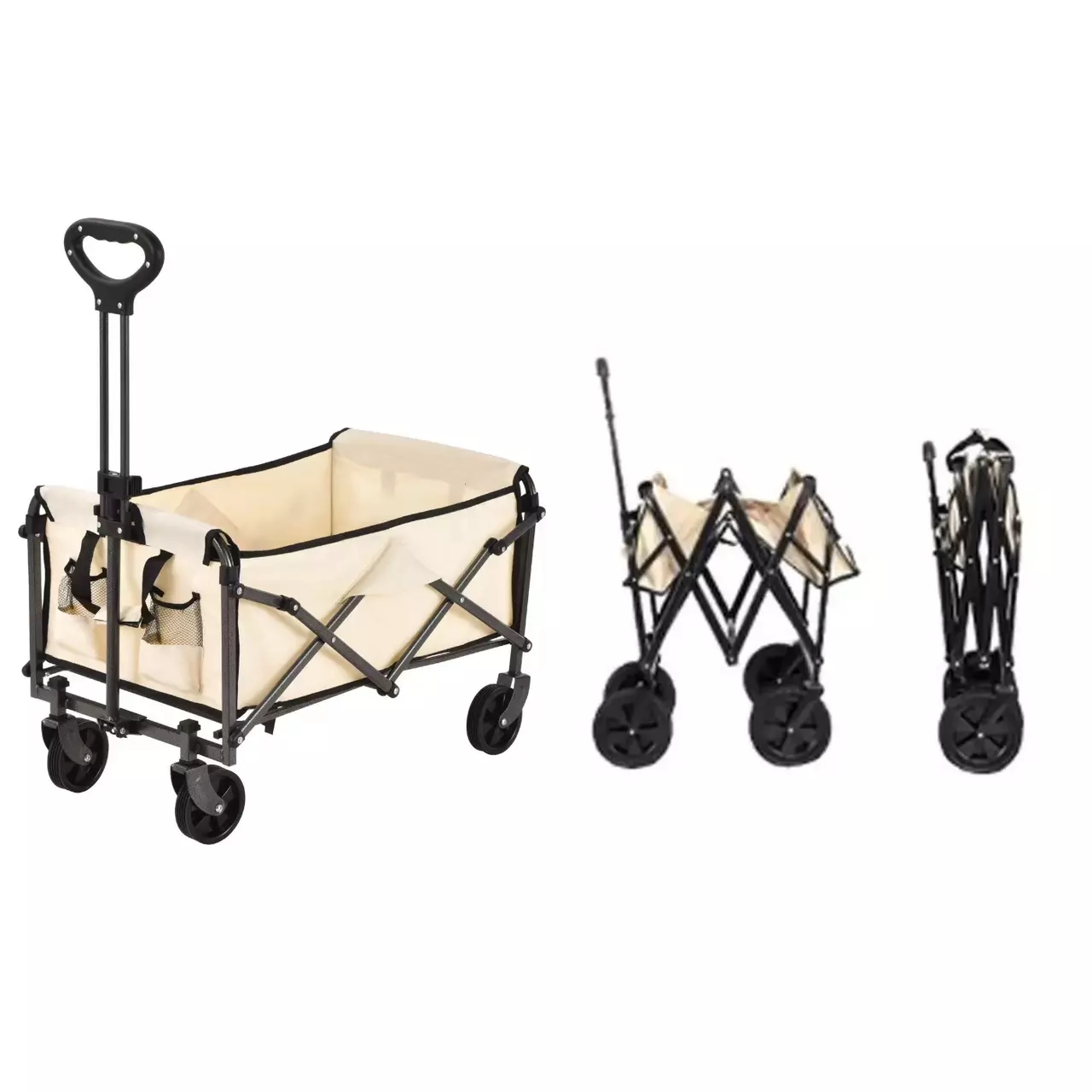 Практична складна тележка зі знімною залізною стільницею — зручне рішення для кемпінгу, дачі, пікніків, ринку та перевезення різних речей. Конструкція виконана на міцному залізному каркасі з посиленими трубами та щільною подвійною тканиною Oxford 600D. Тележка легко складається, що полегшує зберігання та транспортування.