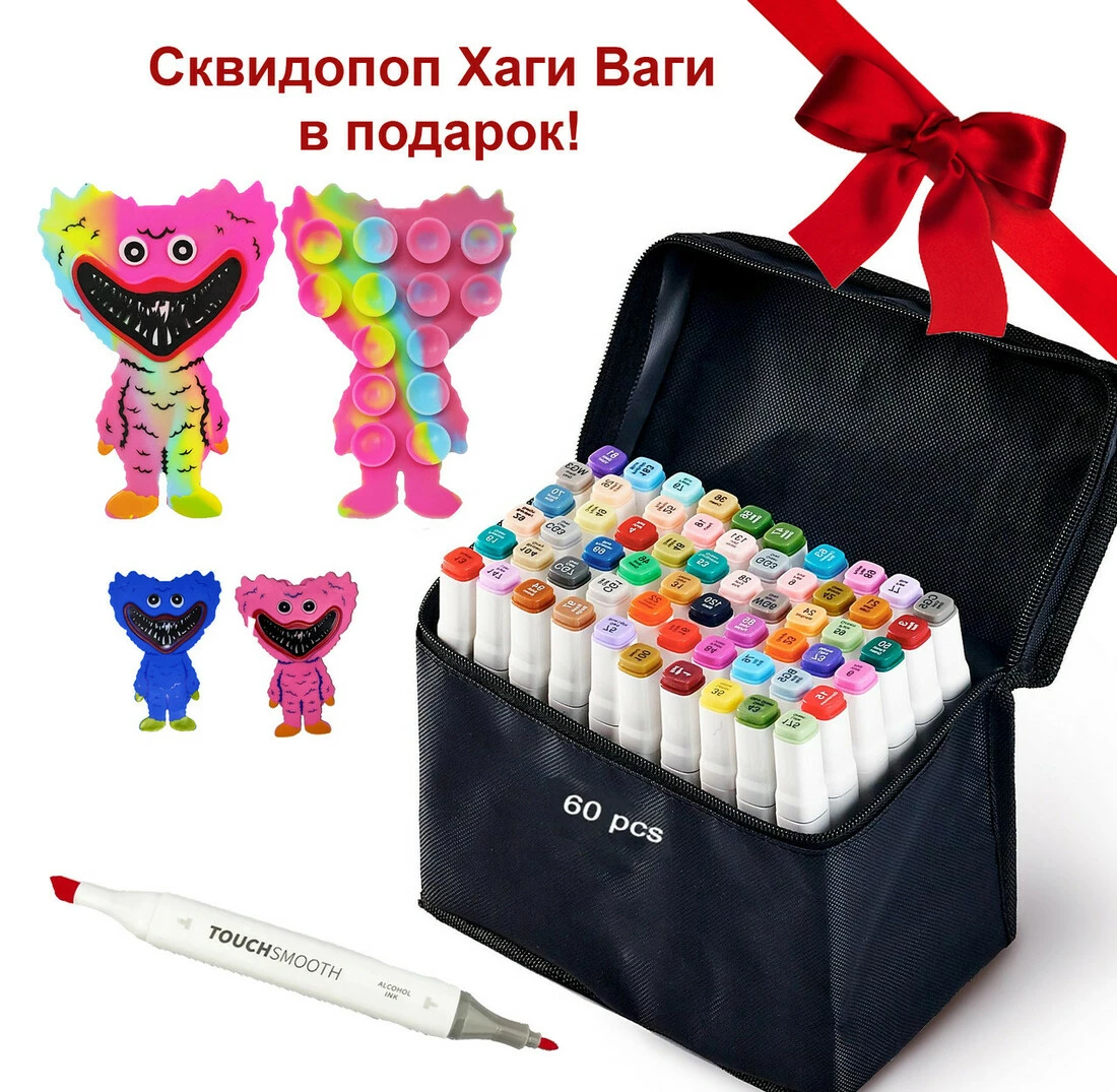 Набір якісних маркерів 60 штук Touch Smooth для скетчинга + Сквідопоп Хагі Вагі