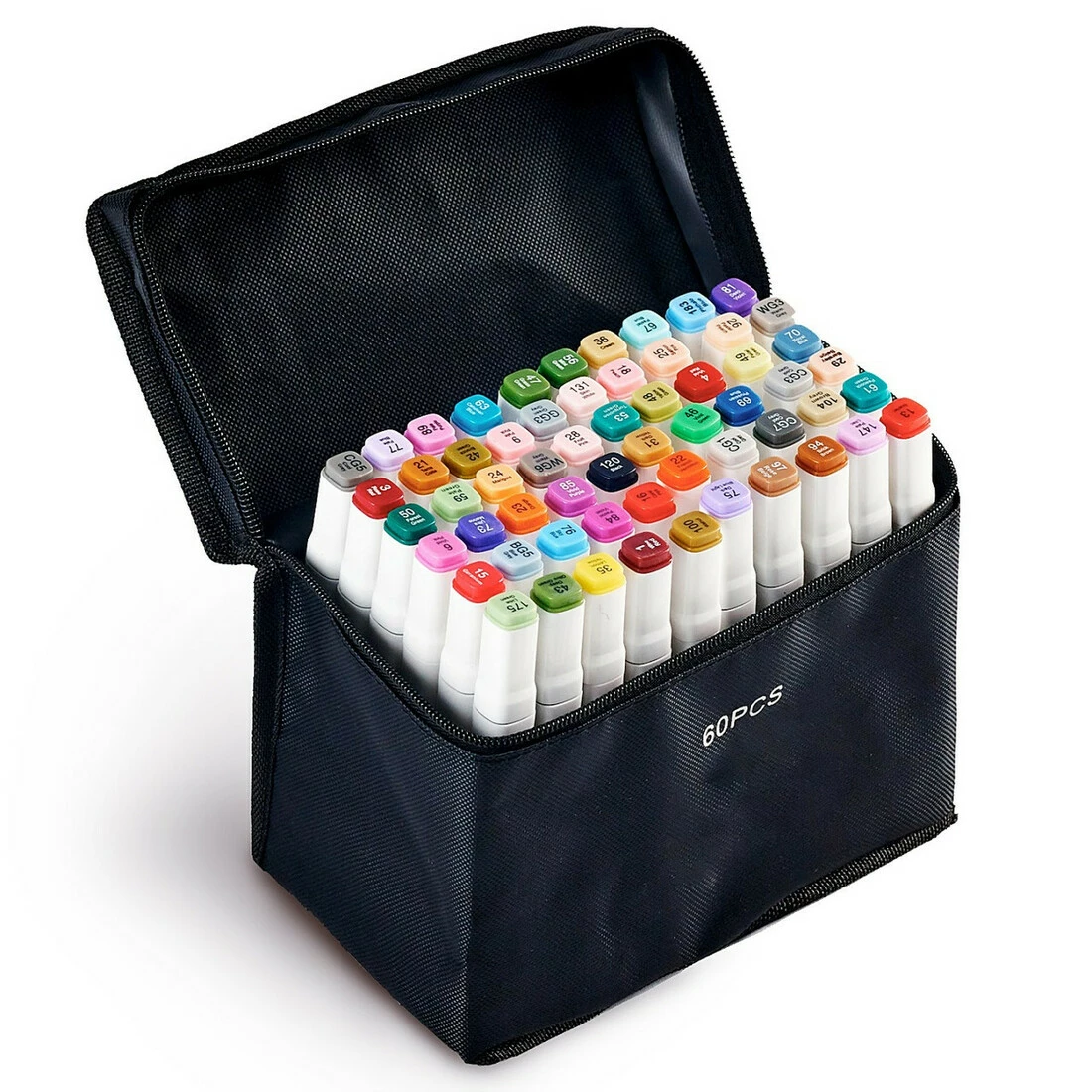 У наборі 60 маркерів різних. Корпус пластиковий гладкий. Ковпачки щільно закриваються.