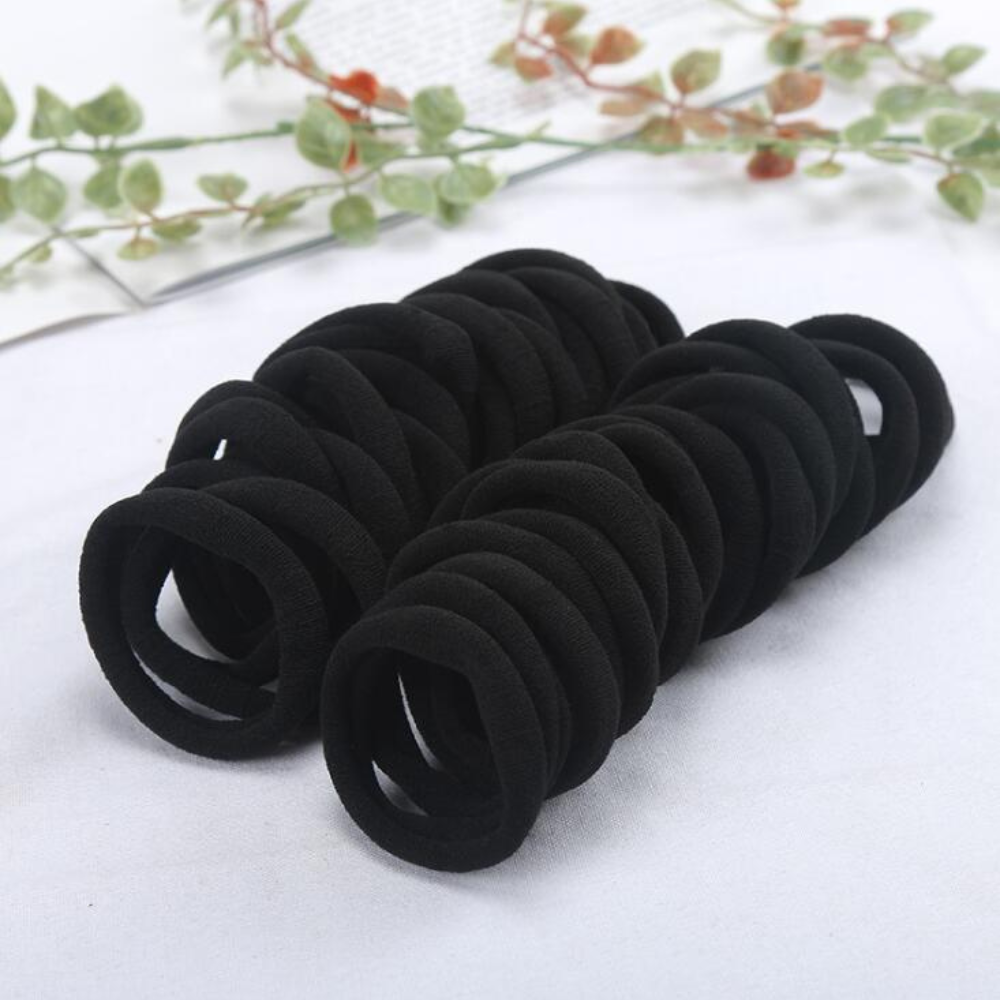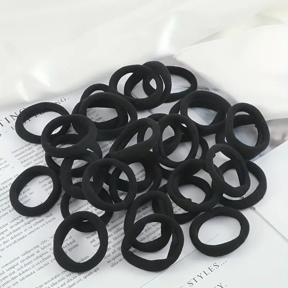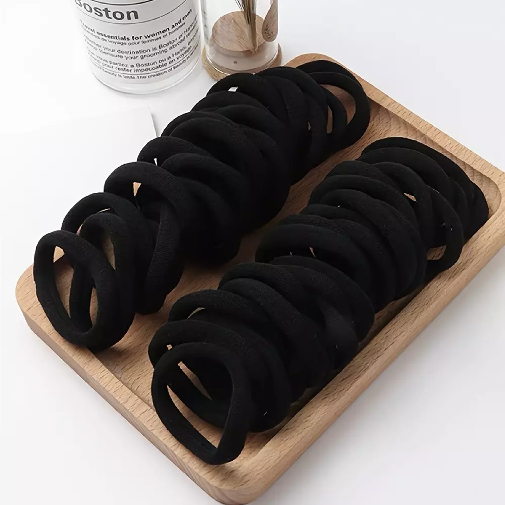 Набір жіночих гумок для волосся, пучків, хвостів м'які 50 шт, міцні, спандекс еластичні, однотонні чорні