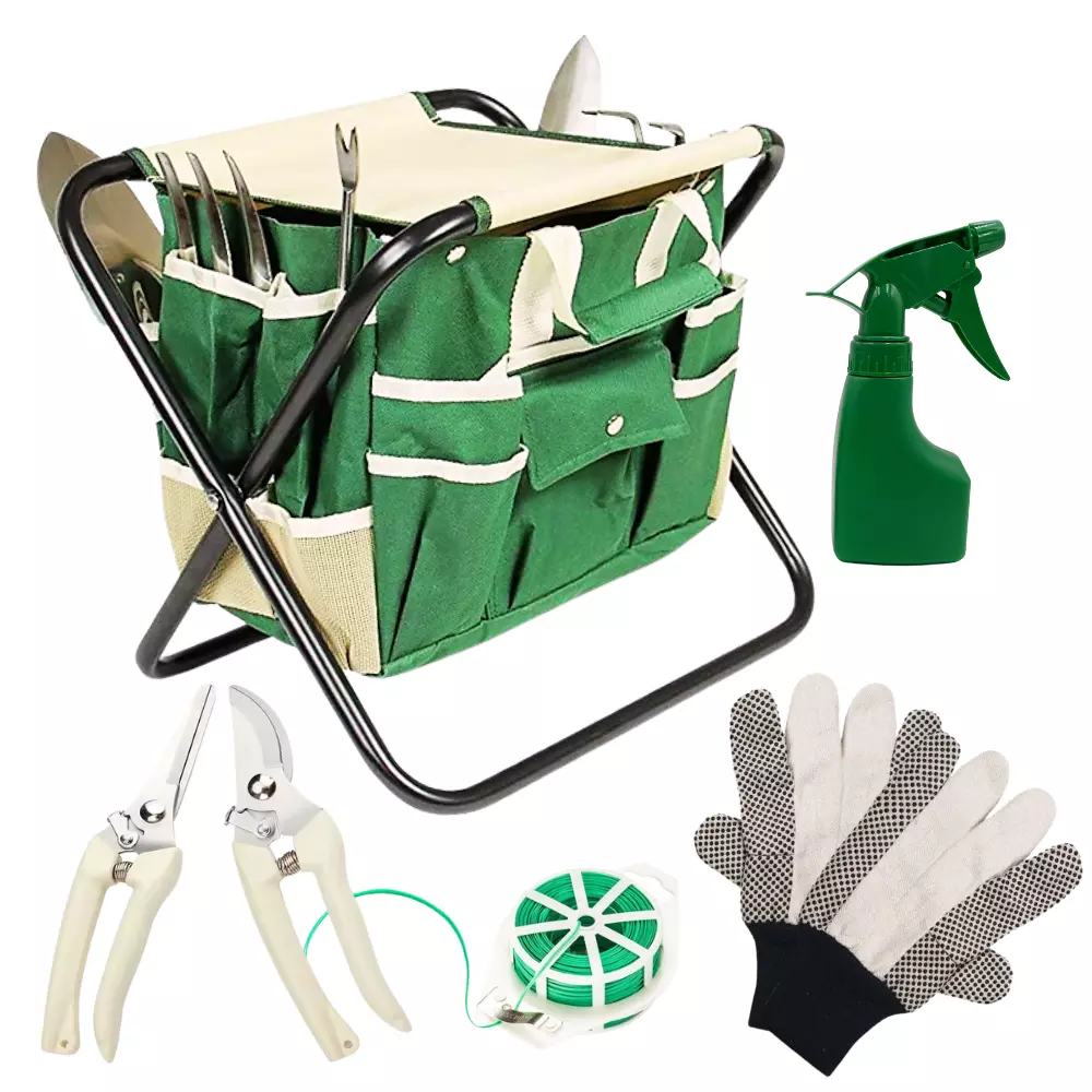 Набор для сада и огорода,сумка с набором из 7 ручных садовых инструментов и складным стулом и аксессуарами