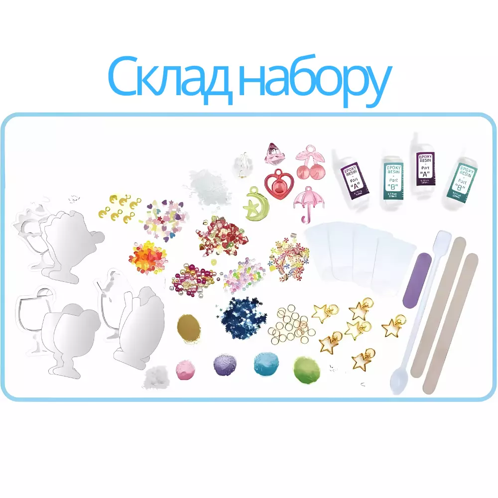 брелоків з ефектом шейкера. Усі елементи безпечні для дітей, смола