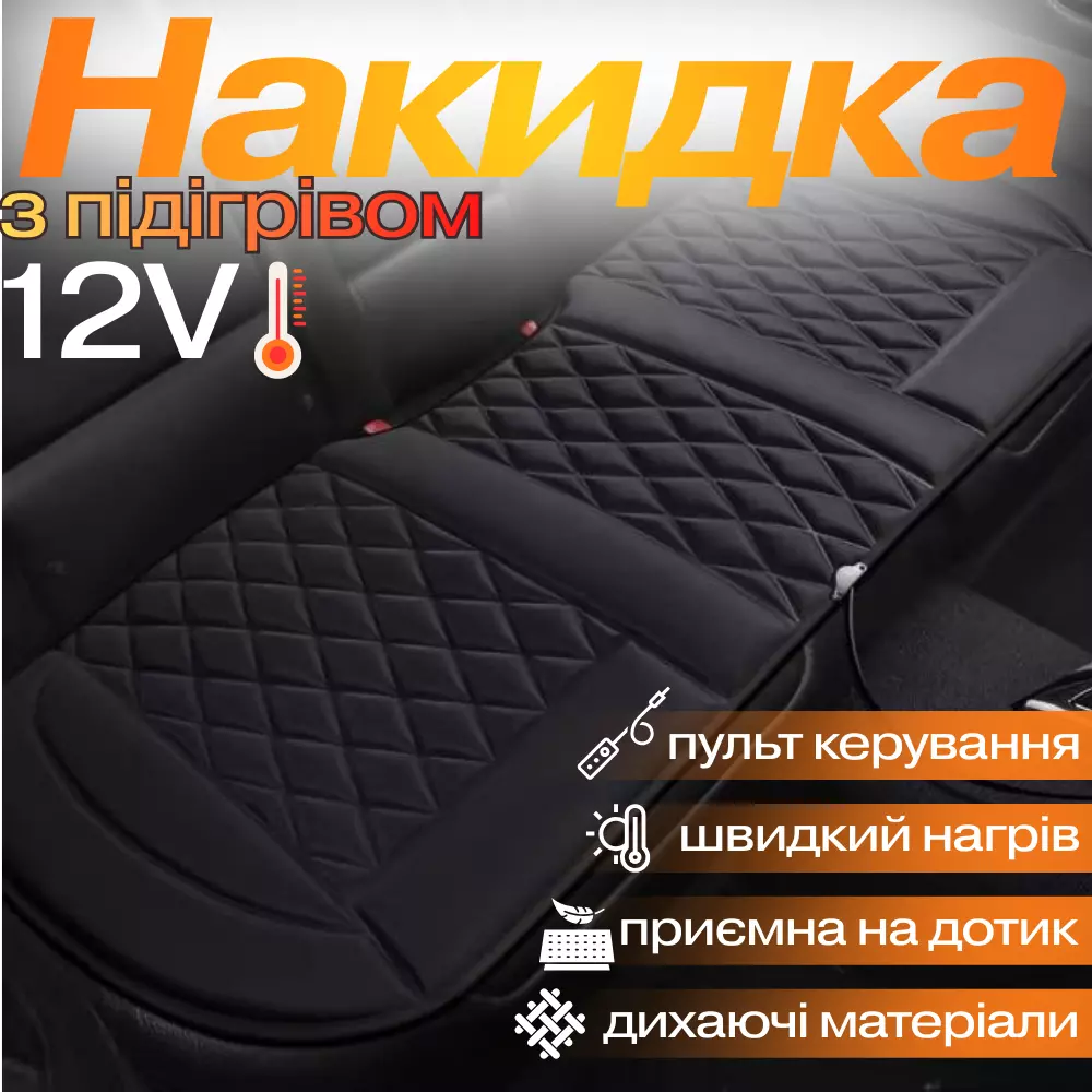 Накидка для автомобільного сидіння з підігрівом на задній ряд універсальна в машину від прикурювача 12В, чорний