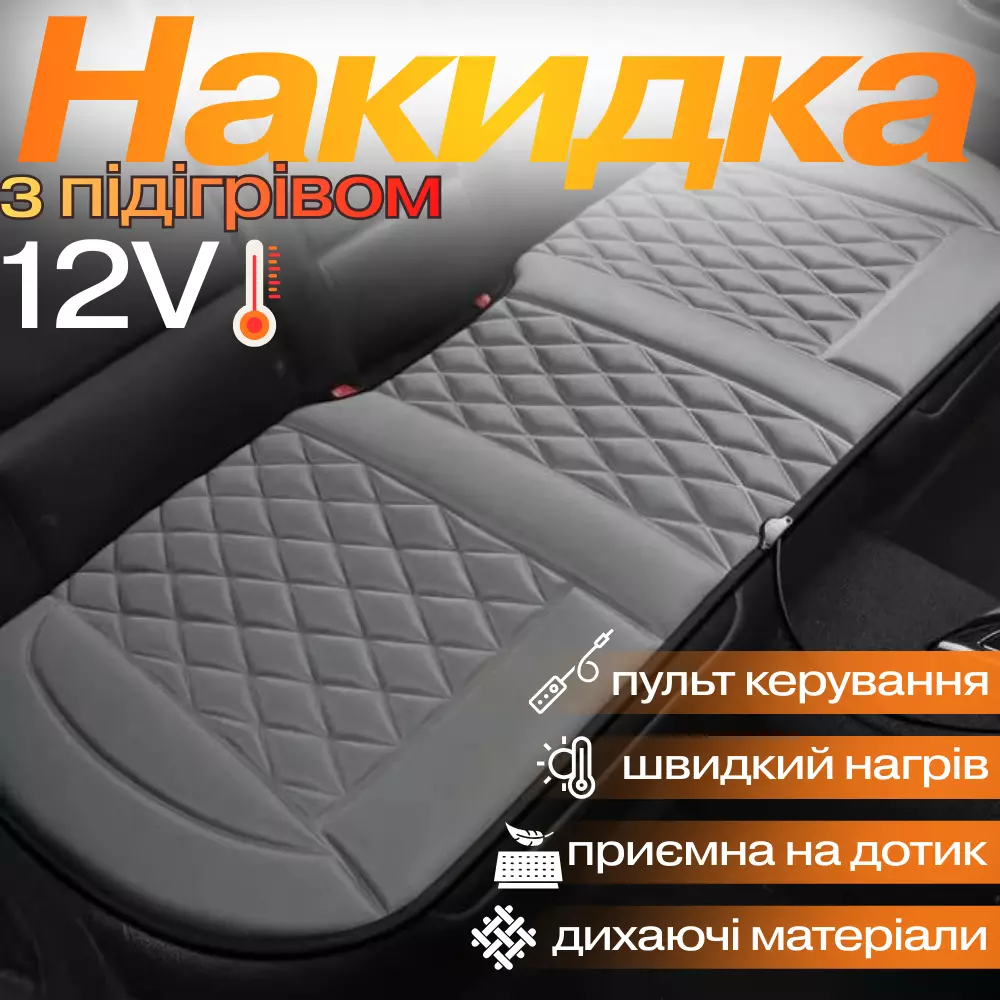 Накидка для автомобільного сидіння з підігрівом на задній ряд універсальна в машину від прикурювача 12В, сірий