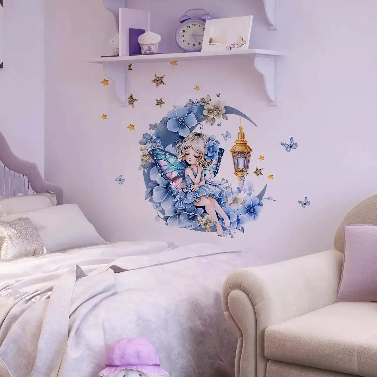 Наклейка декоративна вінілова інтер'єрна в кімнату на стіну «Фея на Місяці» 30х60 см