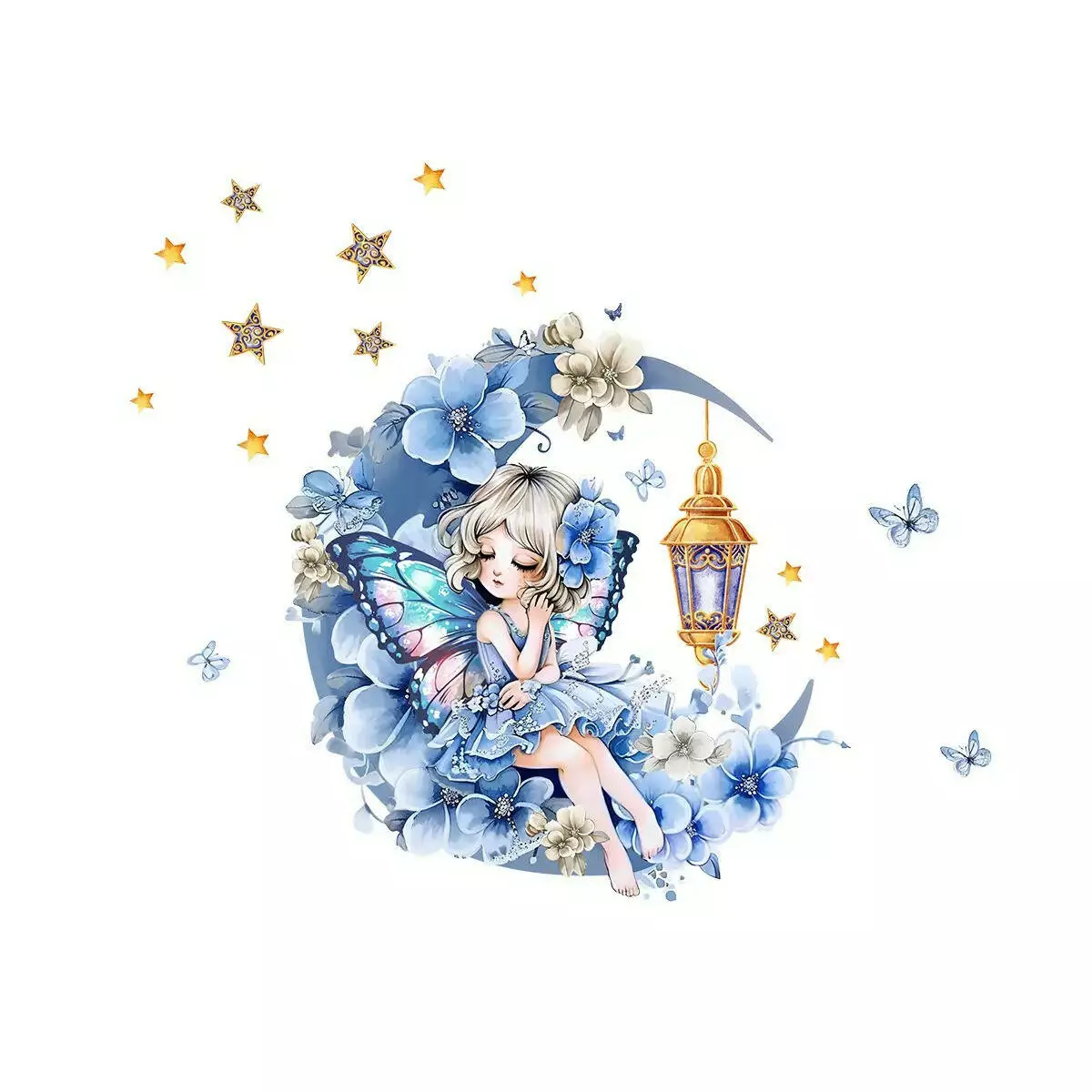 «Фея на Місяці» додасть нотку магії та романтики в інтер'єр, надихаючи дітей і дорослих на мрії та творчість. Яскраві деталі та плавні лінії композиції чудово поєднуються з різними стилями оформлення, від класичного до сучасного. Ця наліпка стане чудовим подарунком для всіх, хто цінує чари та красу.