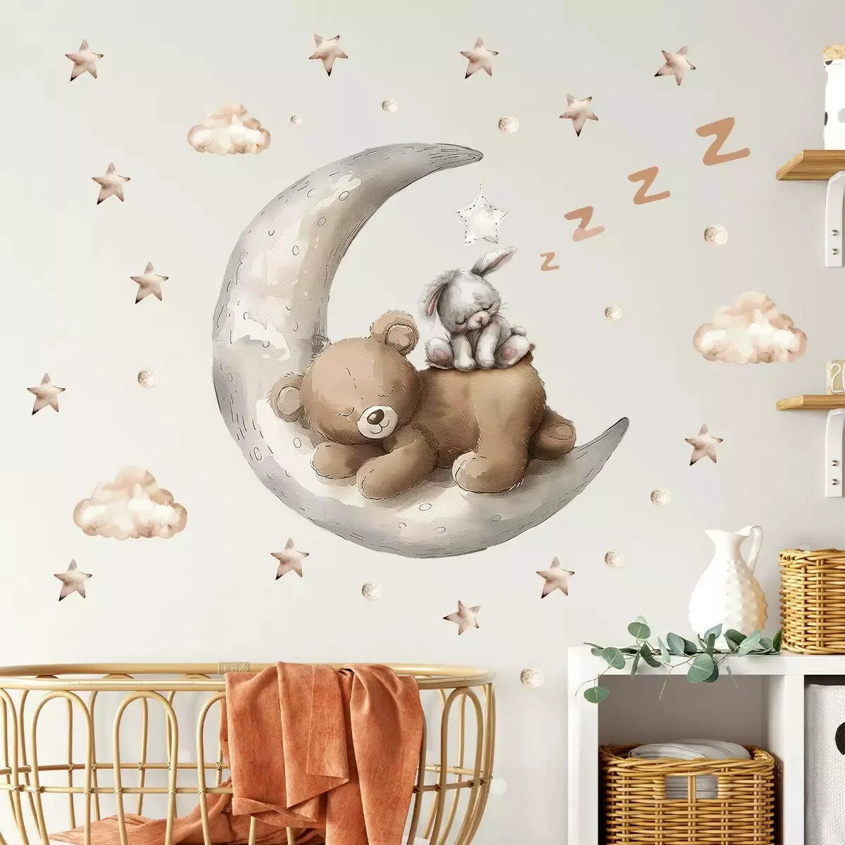 Милий дизайн із ведмедиком і зайчиком на місяці