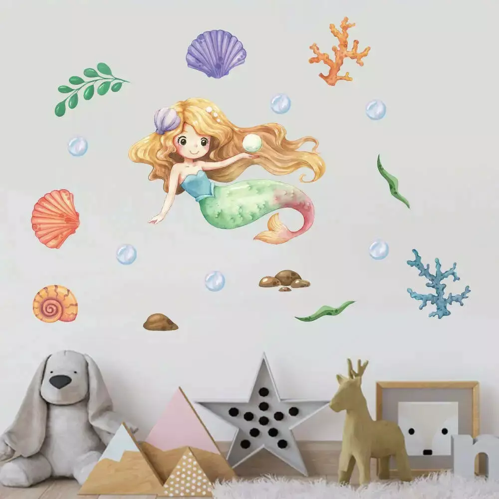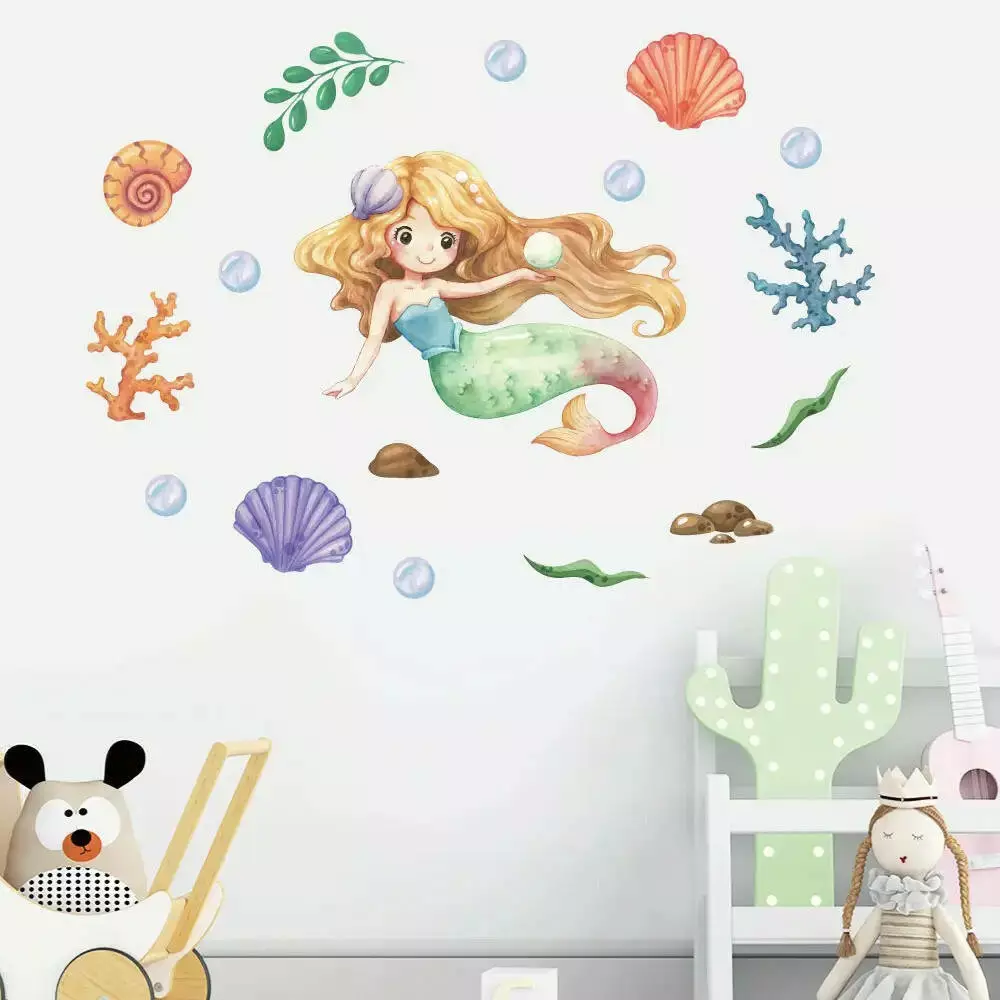 Вінілова наклейка «Аріель» перетворить дитячу кімнату на чарівний куточок, наповнений атмосферою підводних пригод. Витончена русалка Аріель, що плаває серед коралів і черепашок, додасть інтер'єру морської атмосфери та чарівності. Ця композиція пожвавить стіни, створюючи затишний простір, де дитині буде приємно грати, відпочивати та мріяти.