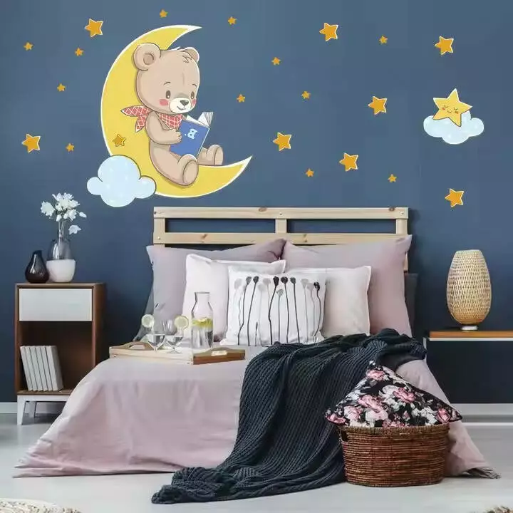 Наклейка вінілова «Ведмедик на місяці» - це зворушлива прикраса для дитячої кімнати, яка подарує затишок і атмосферу казки. Композиція з милим ведмежам, що сидить на півмісяці та захоплено читає книжку серед зоряного неба, надихає малечу на фантазії та мрії. Ця наклейка стане чудовим акцентом на стіні та ідеально підійде для дівчаток і хлопчиків.