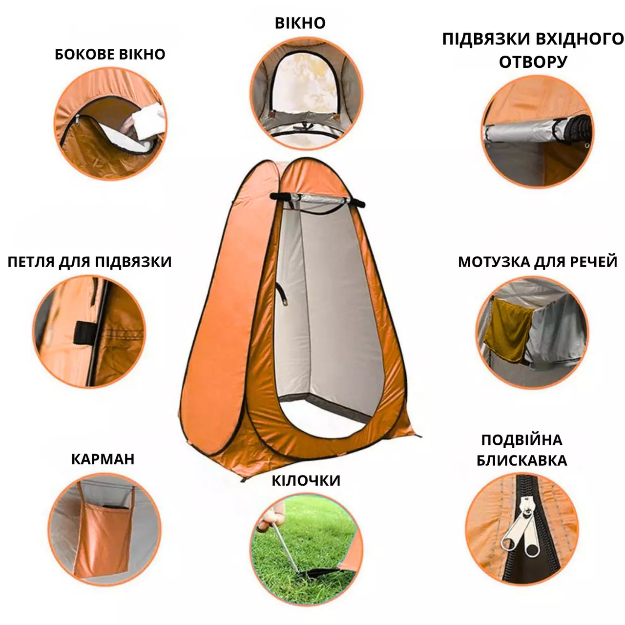 Намет для душу туристичний 120х120х190 см автоматичний, кабінка кемпінгова для переодягання, душу, туалету помаранчевий
