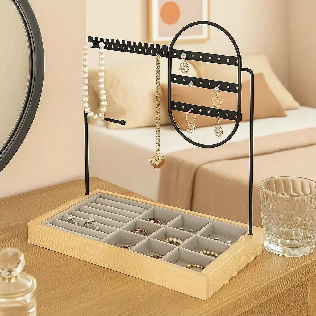 Органайзер для прикрас із дерев'яною основою та металевою стійкою —