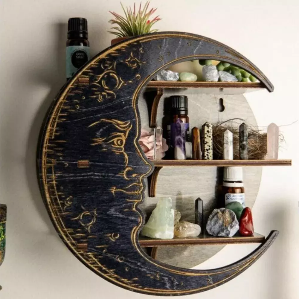 Настінна полиця у формі місяця виготовлена з дерева буде стильною