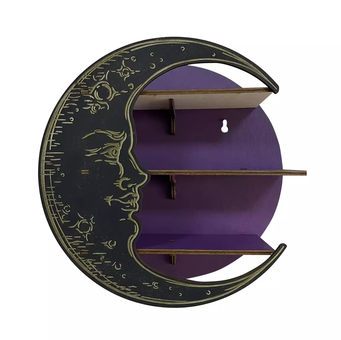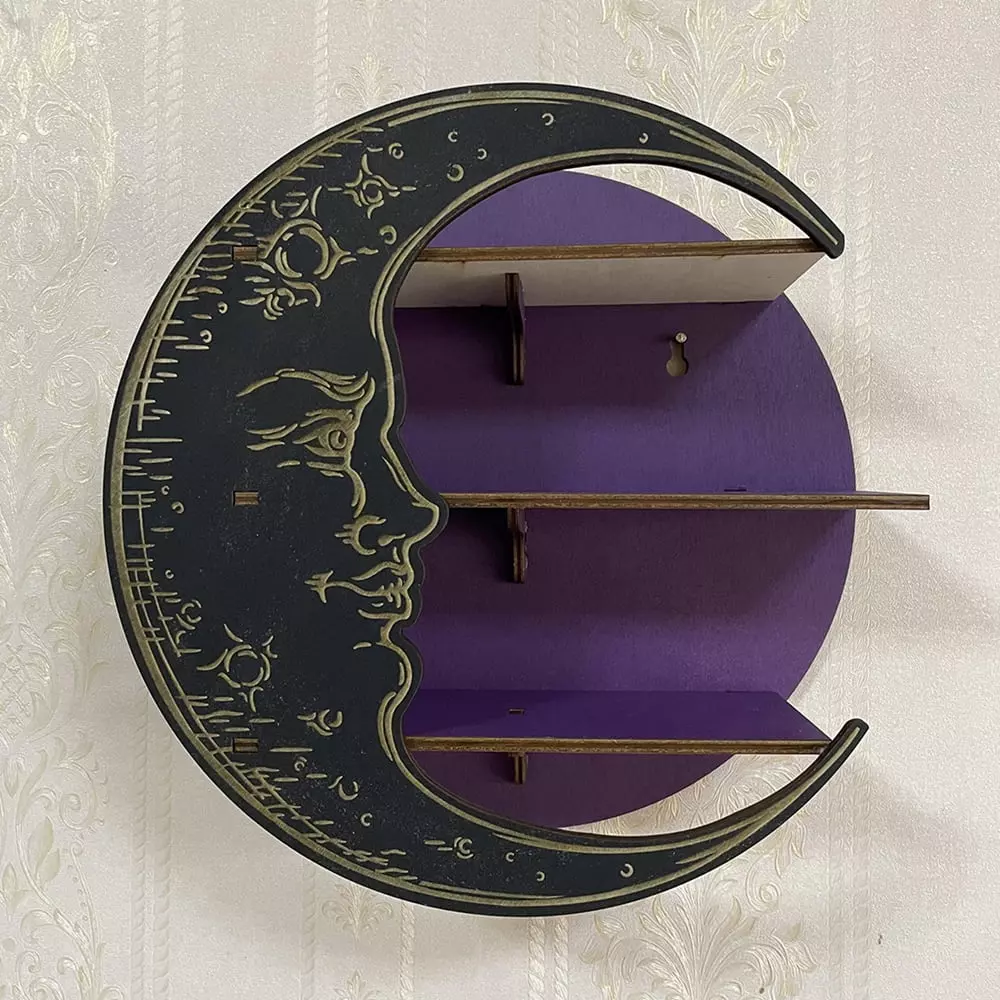 Настінна полиця Місяць, органайзер з 3 полицями для прикрас і декору, дерев'яна полиця півмісяць, колір Purple