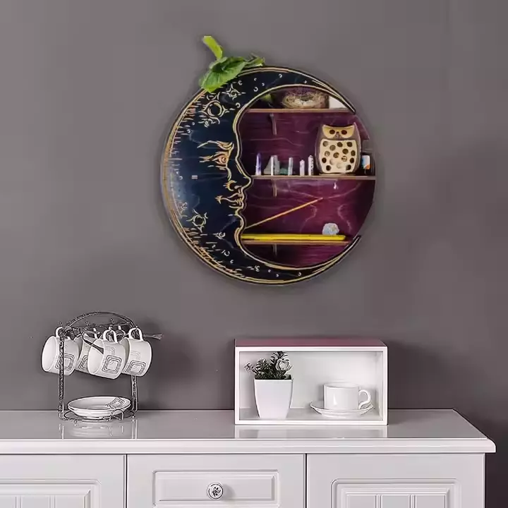 Настінна полиця у формі місяця виготовлена з дерева буде стильною