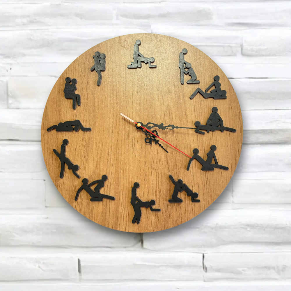 Настінні годинники, дерев'яні годинники в спальню з безшумним механізмом «Камасутра», коричневі