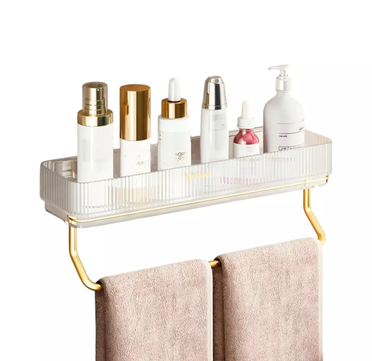 Настінний органайзер для ванної кімнати, полиця з тримачем для рушників, 41.5×10.5×6.5см, прозорий