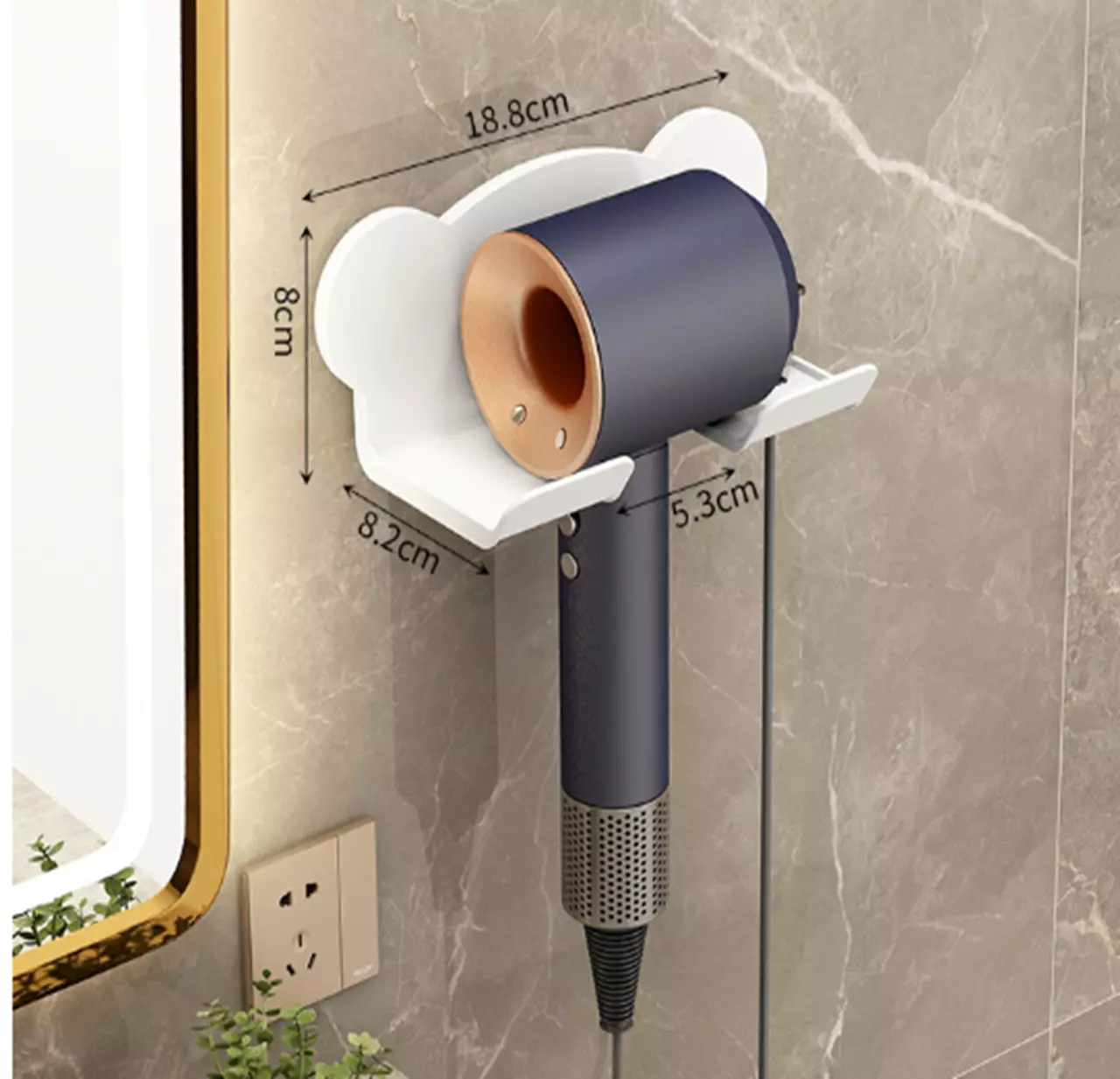 Настінний тримач для фена із пластику, аксесуар для ванної кімнати, 18,8×8,2×8 см, білий колір