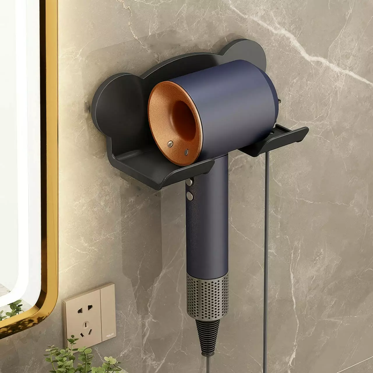Стильний настінний тримач для фена відмінно організує простір у