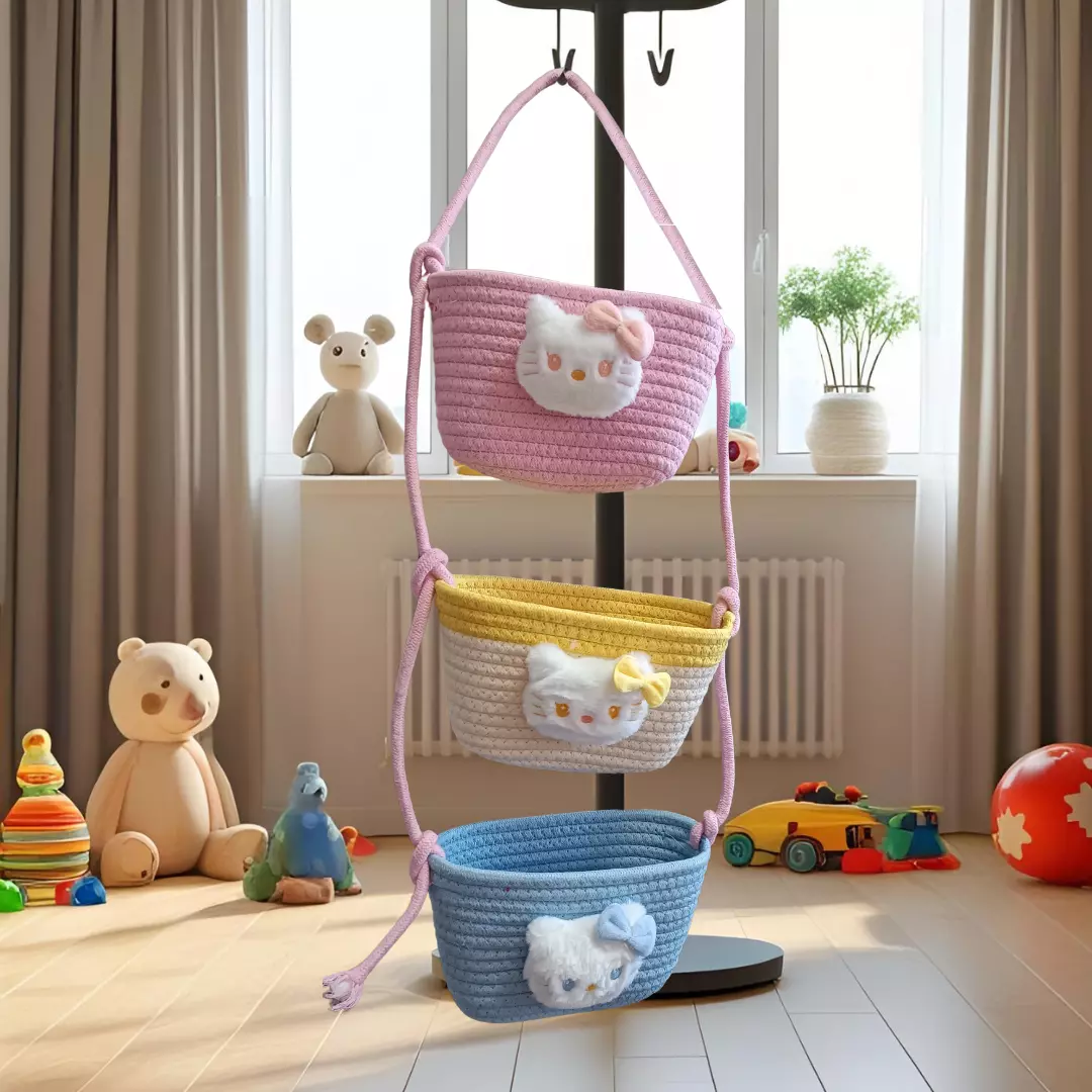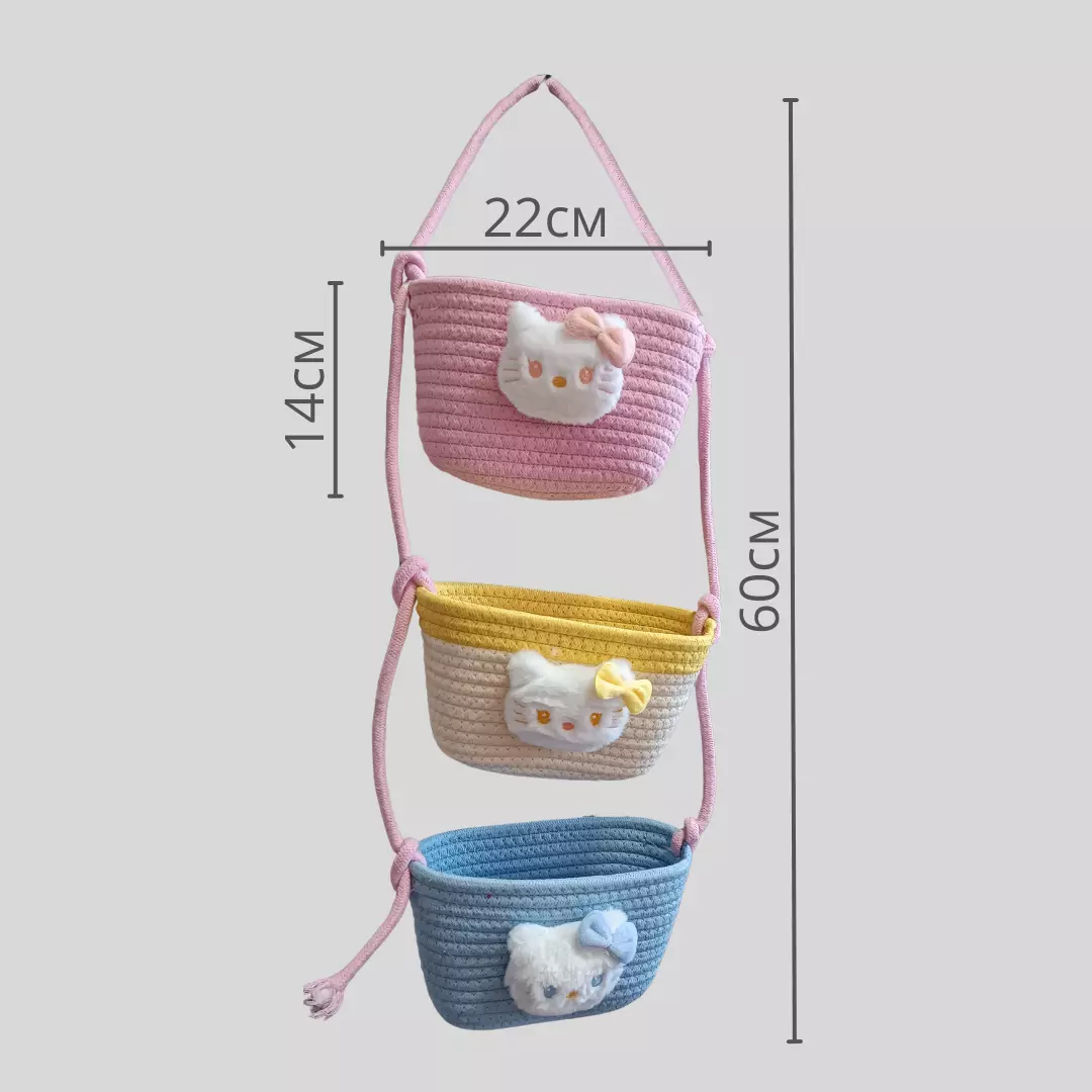 Навісний органайзер для дітей | Плетений кошик для зберігання іграшок, аксесуарів в дитячу кімнату, Кіт