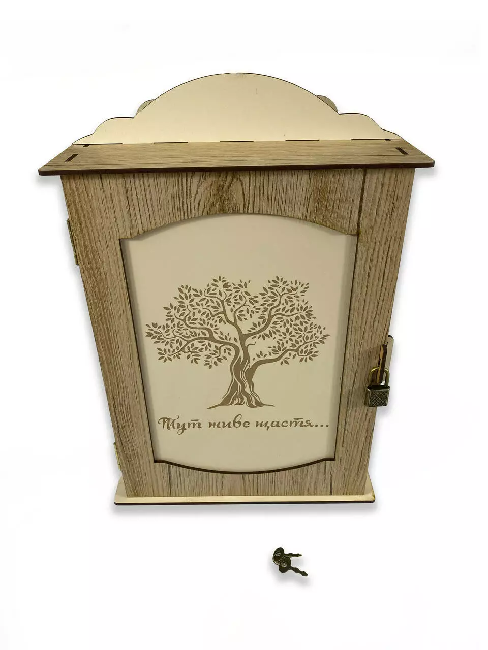 Зручний і практичний наш навісний органайзер-ящик для ключів з натурального дерева з різьбленням стане незамінним помічником у вашому повсякденному житті, забезпечуючи вам спокій і впевненість у збереженні ваших ключів.