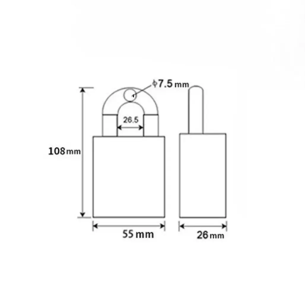 Габарити замка 108 мм заввишки, 55 мм завширшки і 26 мм завтовшки роблять його компактним і зручним у використанні. Цей пристрій ідеально підходить для захисту різних об'єктів, від шафок до воріт, забезпечуючи надійний захист із безліччю способів доступу.