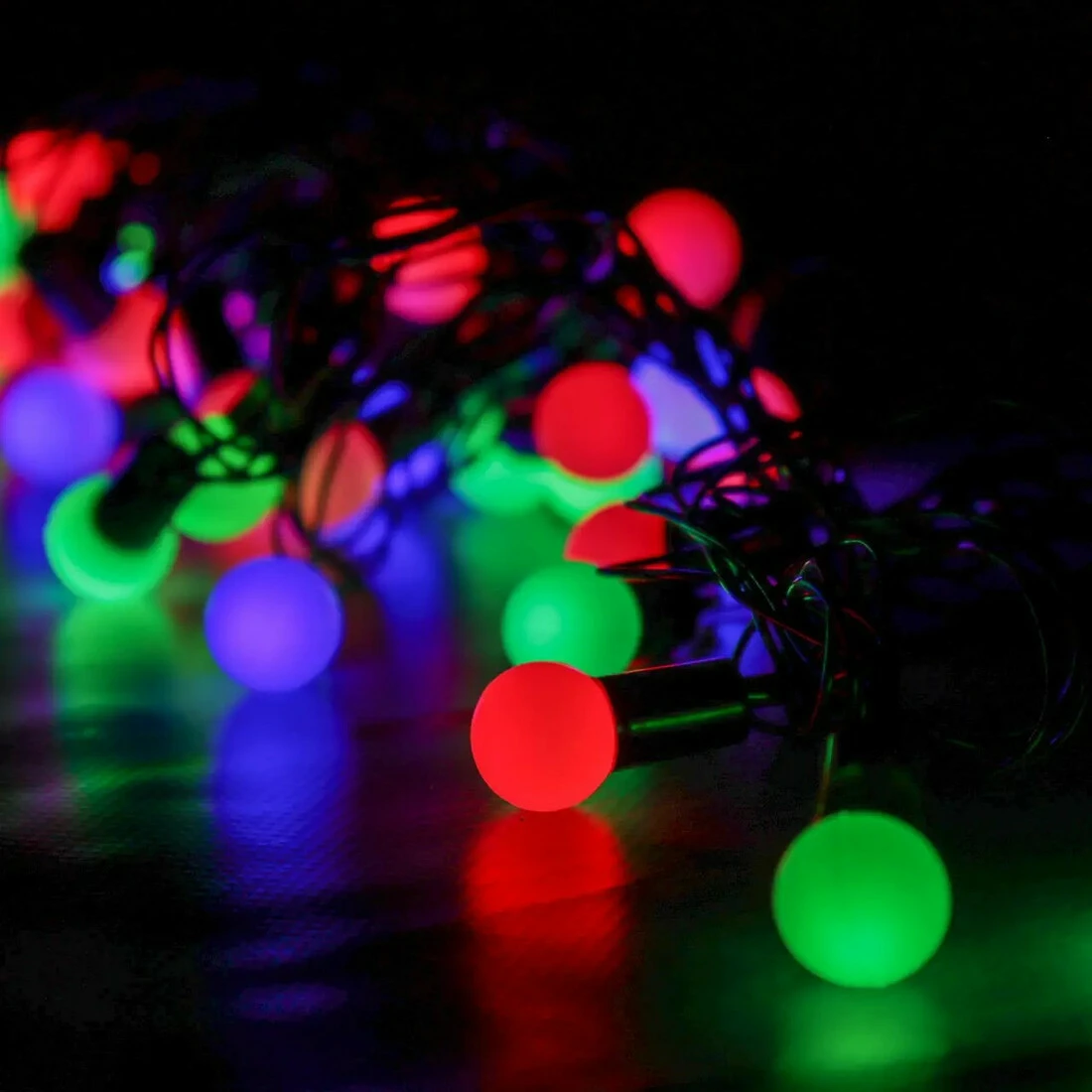 Новорічна електрична гірлянда з матовими різнокольоровими кульками 5 метрів завдовжки, 1 режим