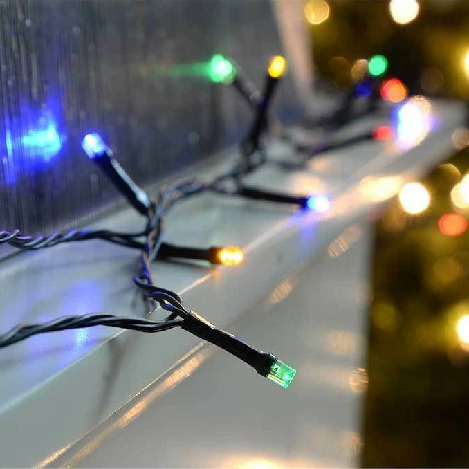Новорічна гірлянда з яскравими різнокольоровими лампочками 9,5 метрів та чорним шнуром з вилкою для розетки