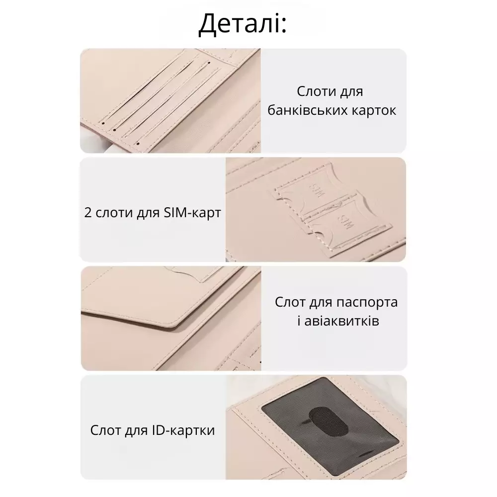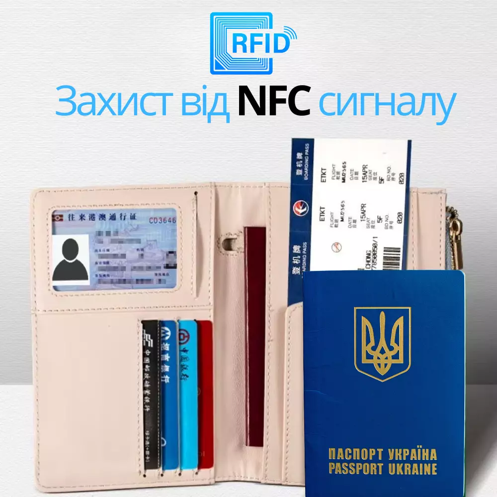 Функціональний і стильний органайзер для зберігання паспорта, карток, квитків і готівки. Виготовлений з міцного кожзаму фіолетового кольору. Вбудований RFID-захист блокує несанкціоноване зчитування даних. Підходить для подорожей, роботи та щоденного використання.