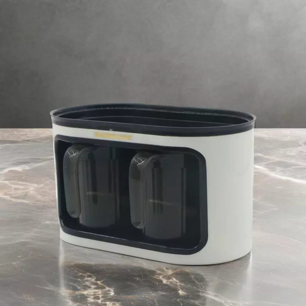 Дві чаші дають можливість зберігати два різних види приправ або продуктів одночасно, забезпечуючи зручність використання. Органайзер виготовлено з міцного та безпечного пластику, який легко миється та вирізняється довговічністю.