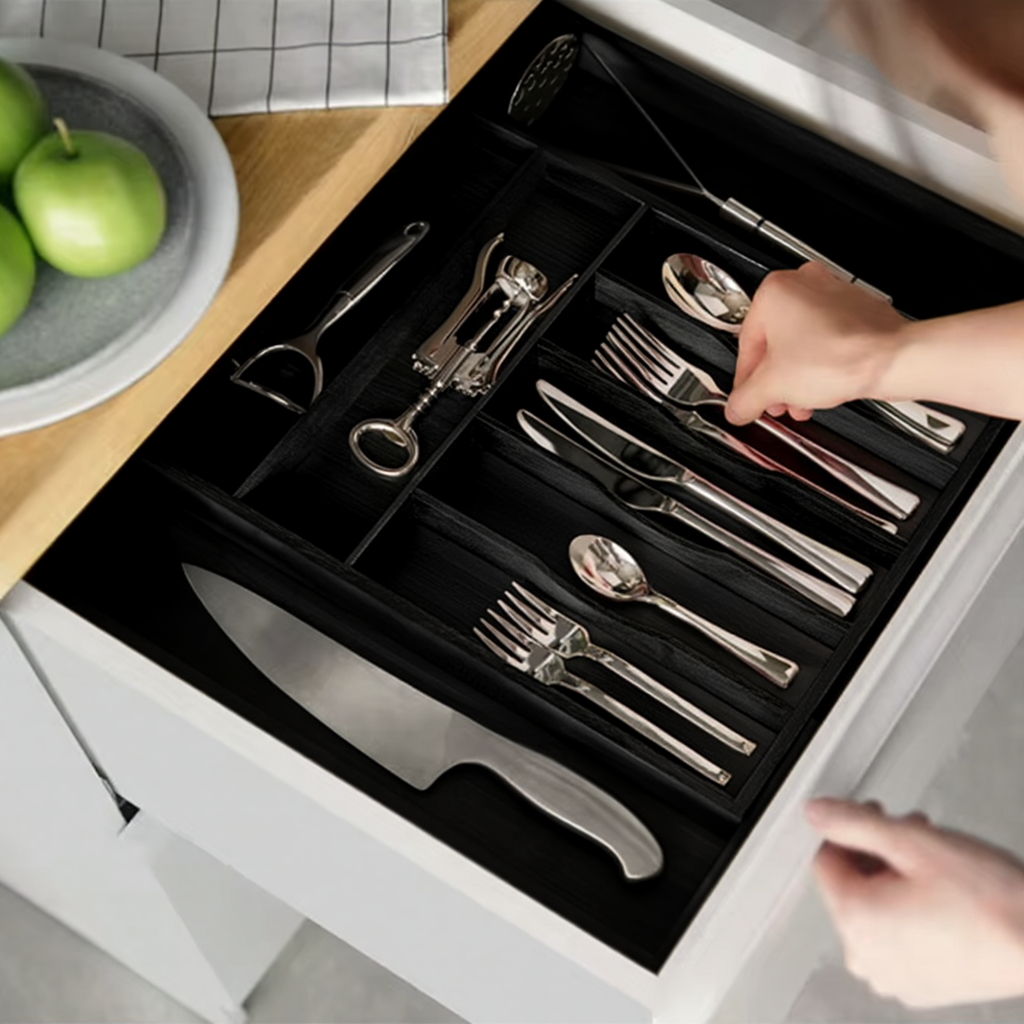 чорний — зручне і практичне рішення для зберігання виделок, ложок,