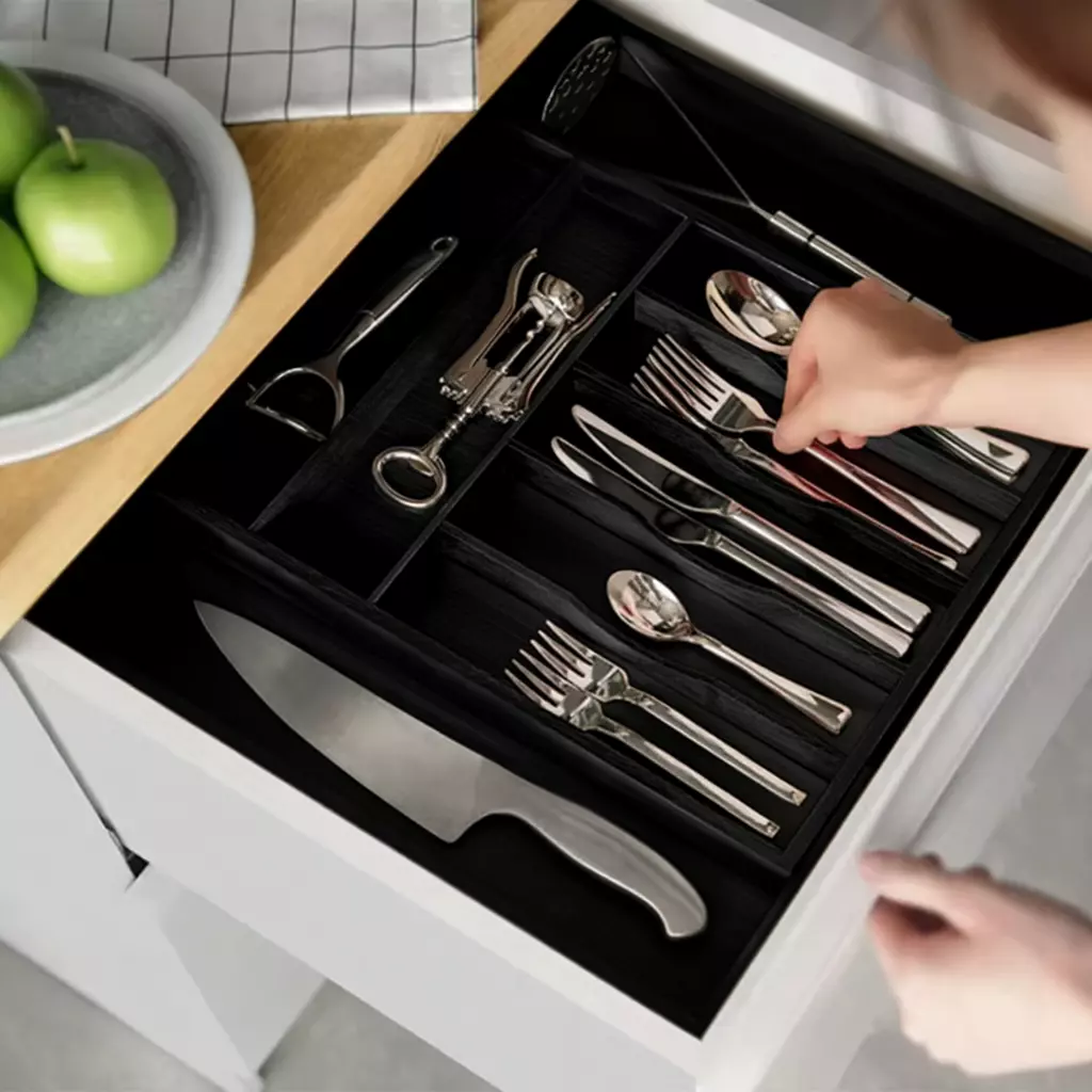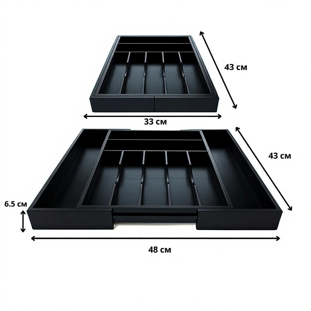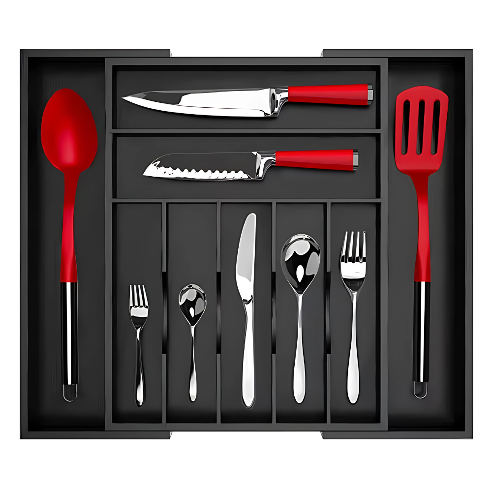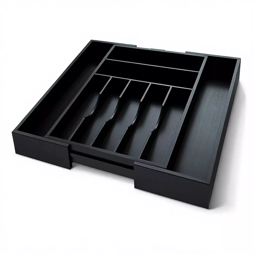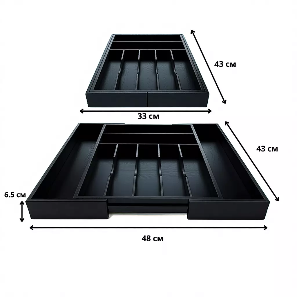 Органайзер для столових приборів, розсувний для кухні бамбуковий лоток для зберігання вилок, ложок і ножів, чорний