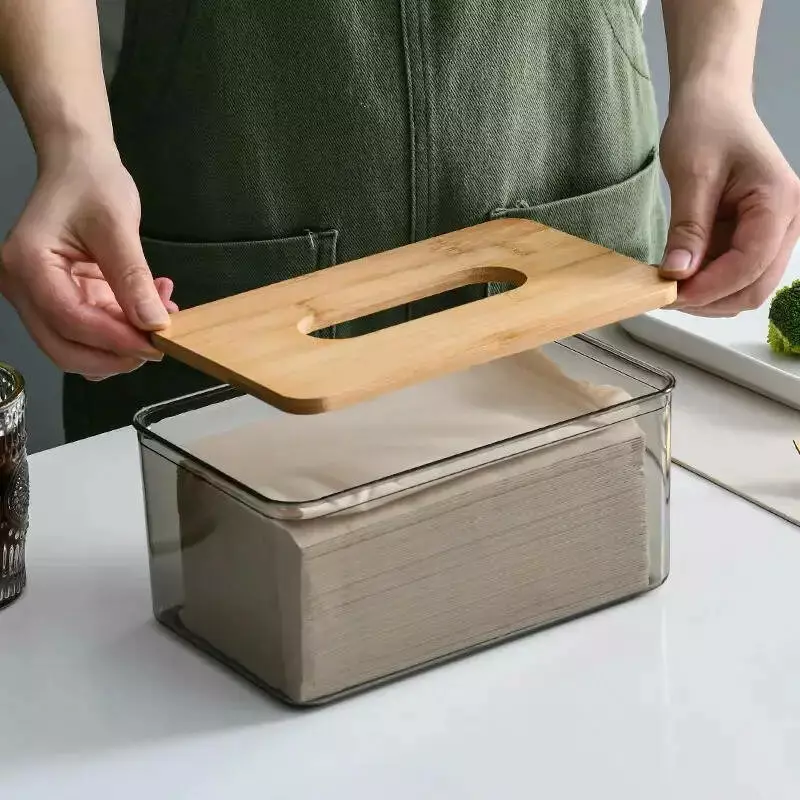 Органайзер-контейнер для серветок, пластиковий Розмір M з дерев'яною кришкою