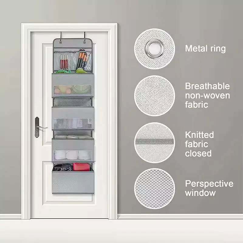 Органайзер підвісний, дверний для зберігання речей, 5 відділень, складаний, сірий