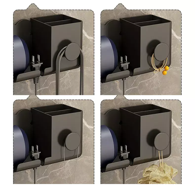 Органайзер пластиковий для ванної кімнати, настінний тримач для фена 23.2×8.2×9.2см, чорний колір