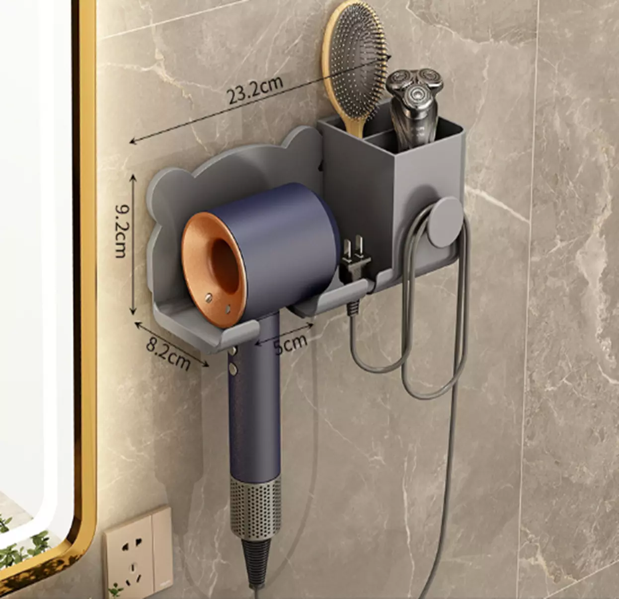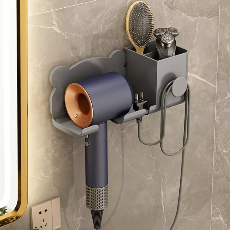 Органайзер пластиковий для ванної кімнати, настінний тримач для фена 23.2×8.2×9.2см, сірий колір