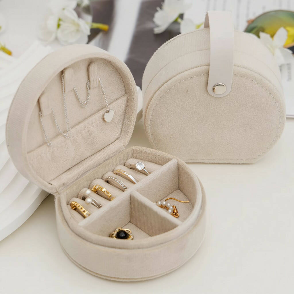 Органайзер-шкатулка для прикрас футляр для зберігання коштовностей і аксесуарів органайзер 10х9х5 см оксамит, бежевий