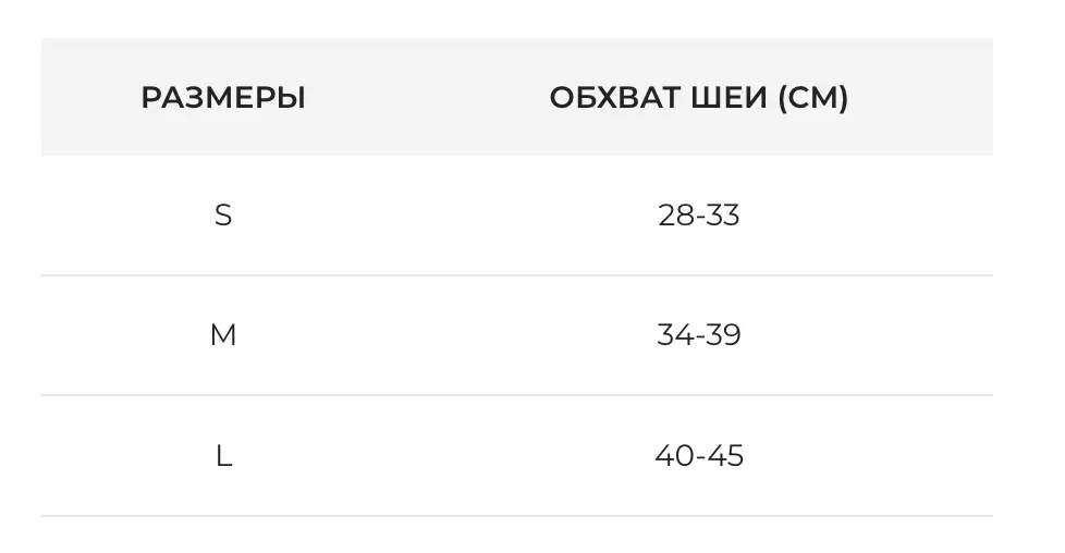 РОЗМІРИ ОБХВАТ ШИЇ (CM)