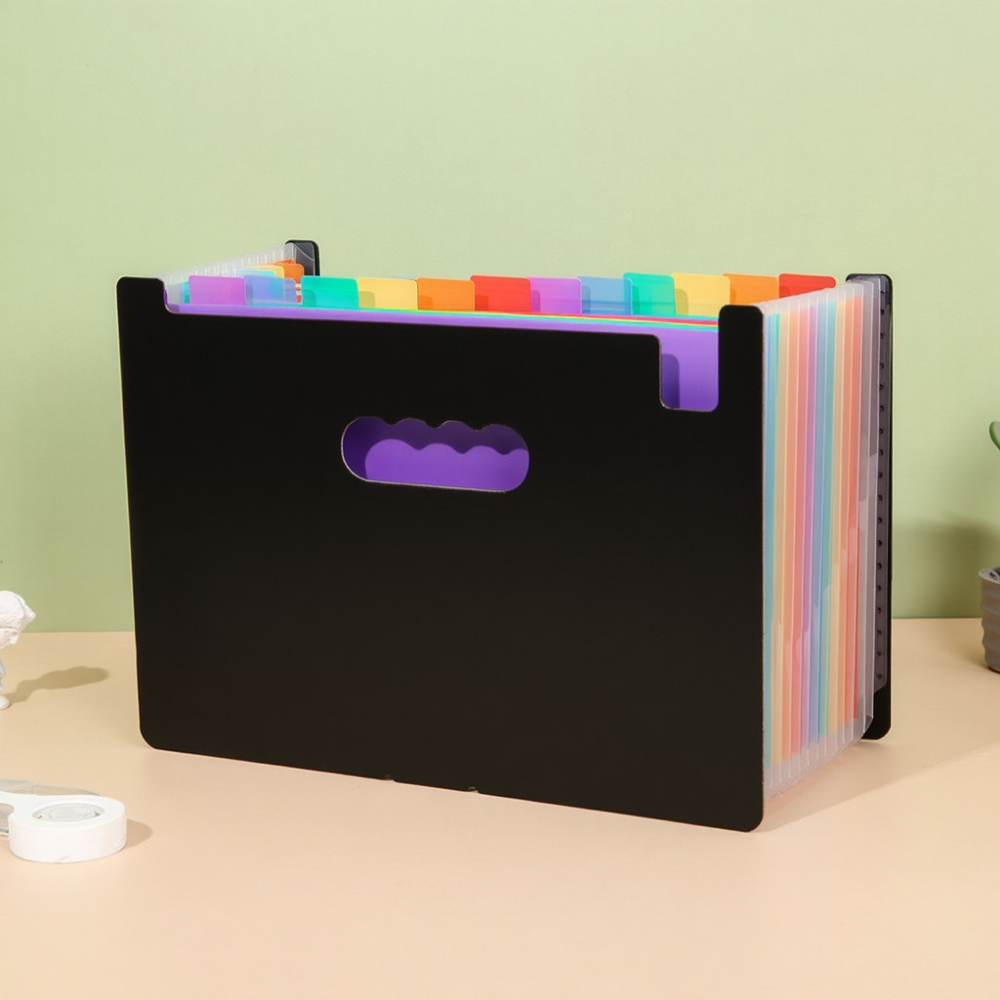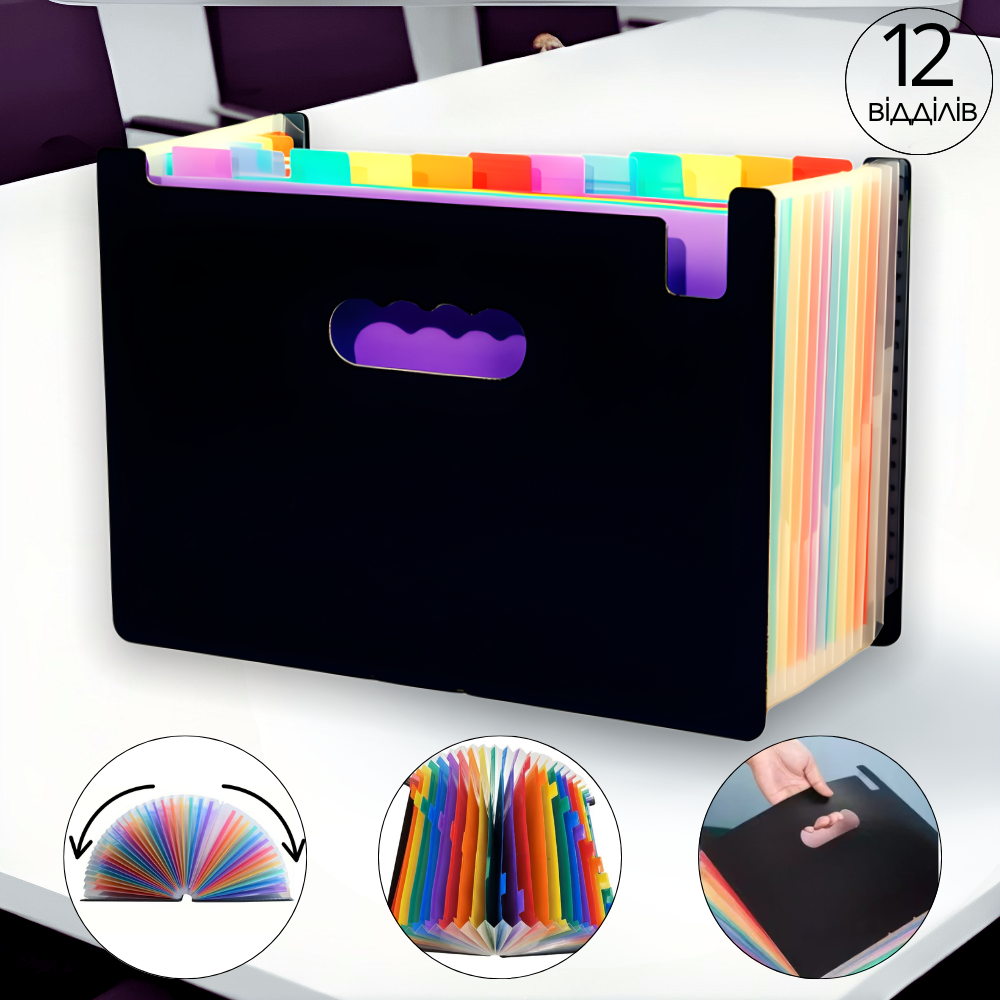 Папка-органайзер для зберігання документів і файлів формат А4 на 12 відділень,з кольоровими вкладками, чорна 330x240x20 мм