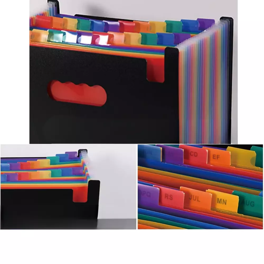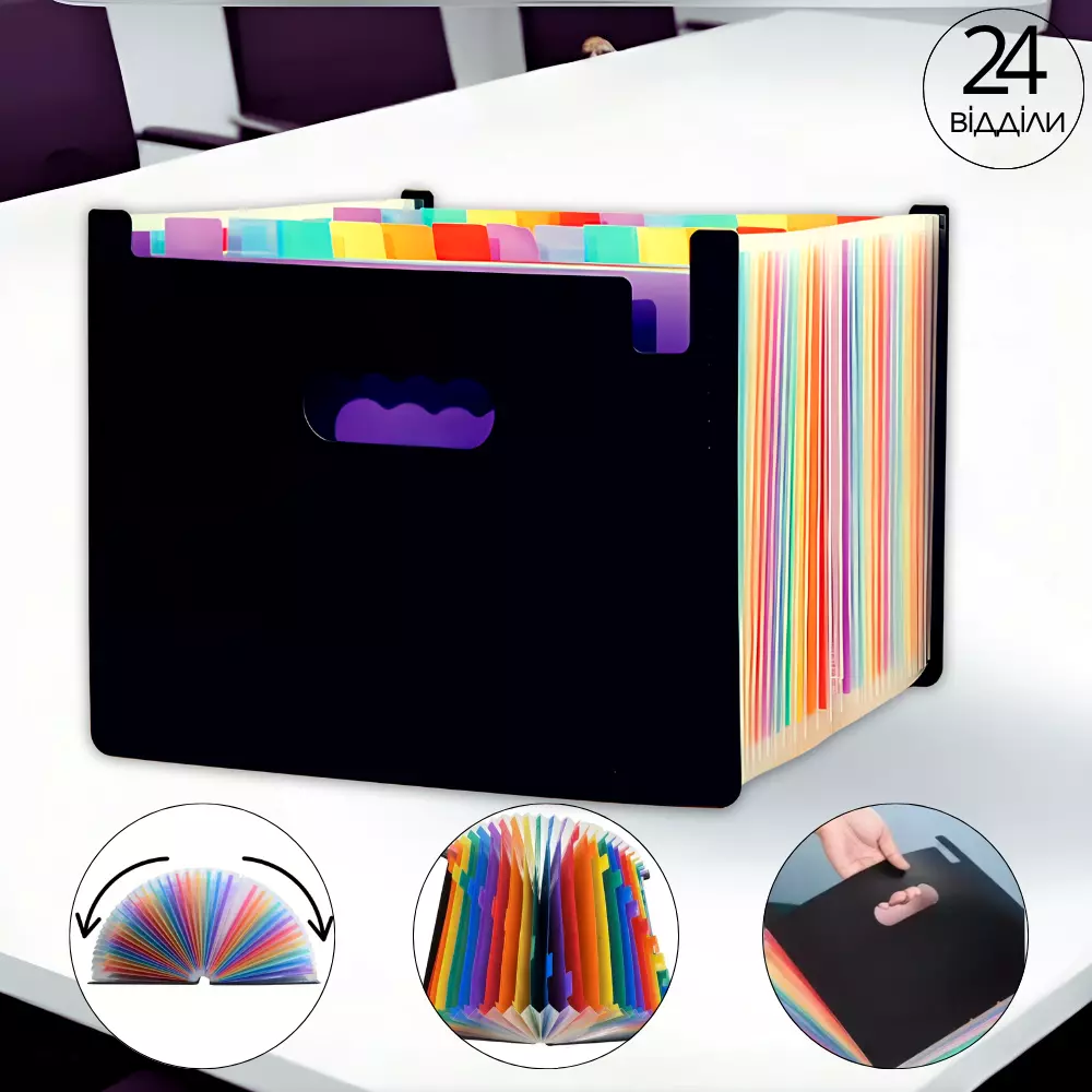Папка-органайзер для зберігання документів і файлів формат А4 на 24 відділення,з кольоровими вкладками,чорна 330x240x30 мм