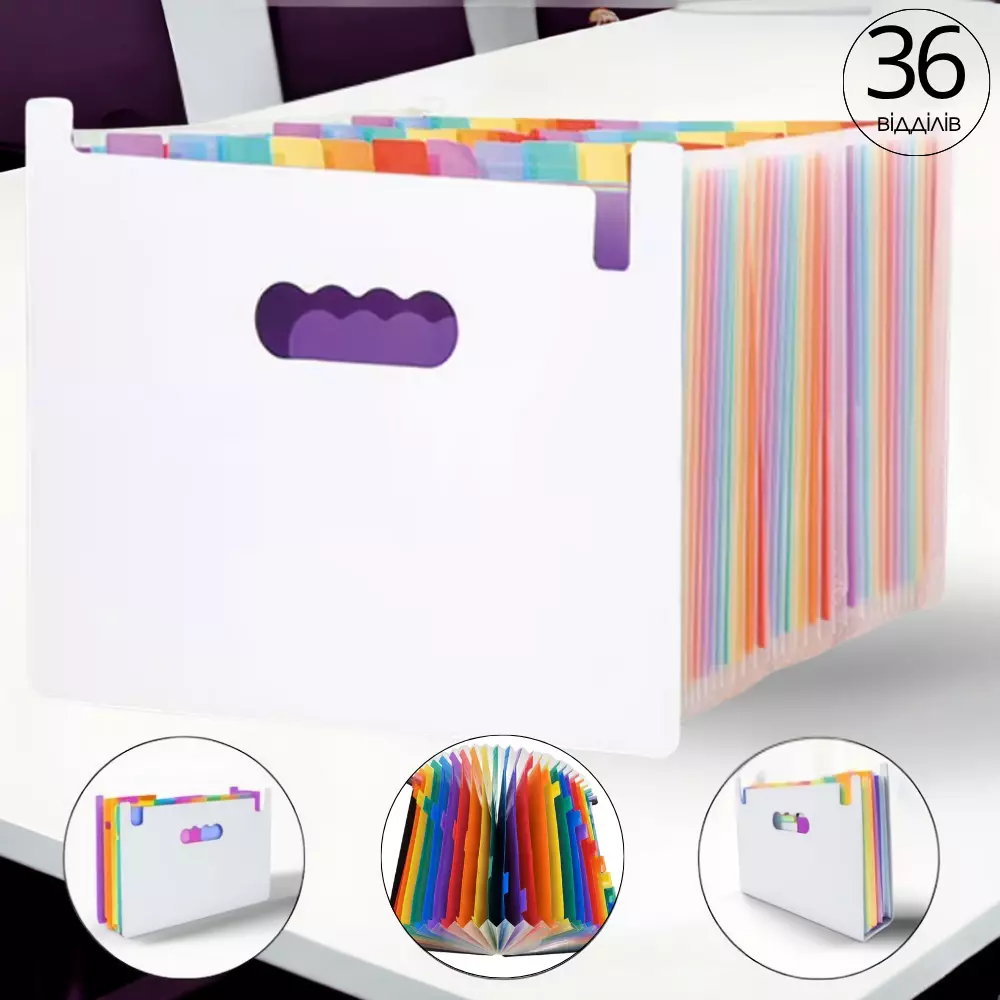 Папка-органайзер для зберігання документів і файлів формат А4 на 36 відділень,, з кольоровими вкладками, чорна 330x240x40 мм