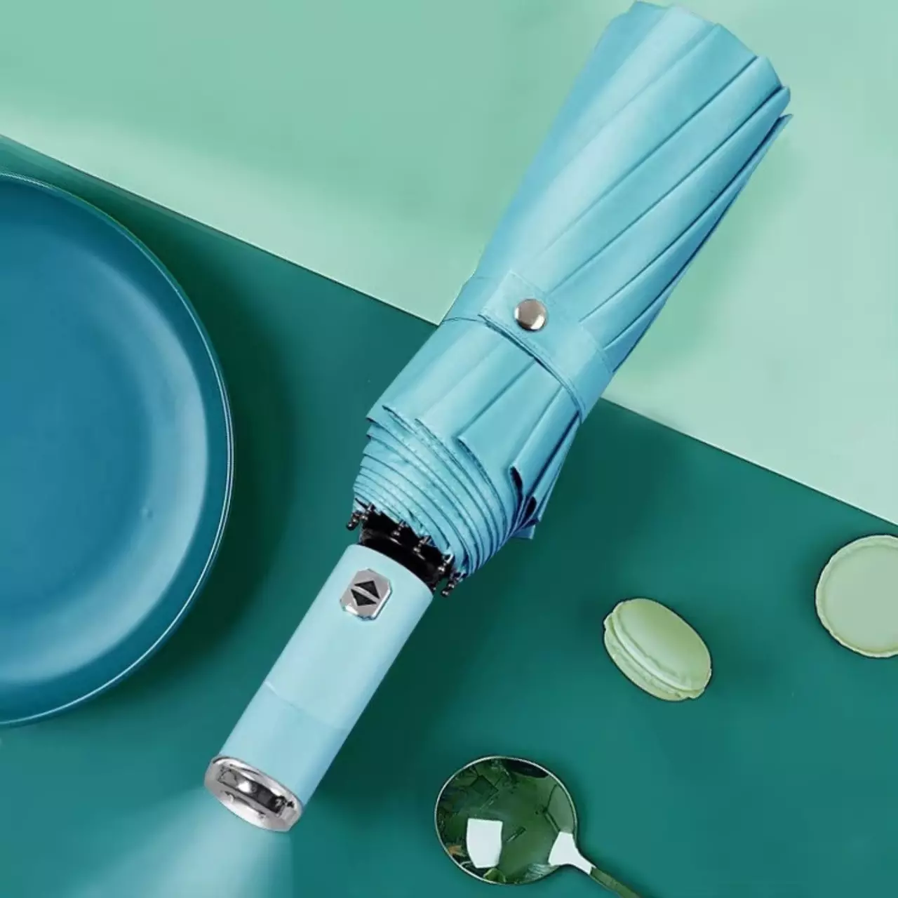 Парасолька 98 см з Led-ліхтариком від дощу, сонця, діаметр, парасолька автоматична, 10 спиць, light-blue