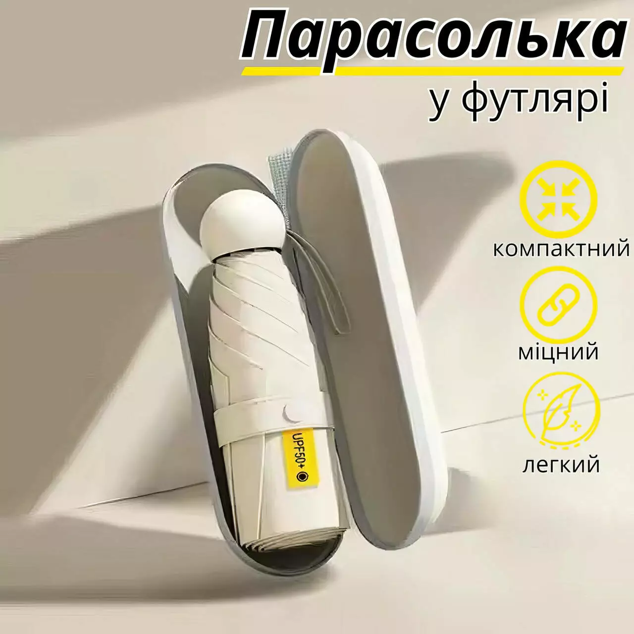 Кишенькова парасолька у футлярі — це ідеальне поєднання зручності та елегантного дизайну. Завдяки компактним розмірам вона легко поміщається в сумку чи рюкзак, а її бежевий колір надає стильний та універсальний вигляд. Ця парасолька стане надійним супутником за будь-якої погоди.