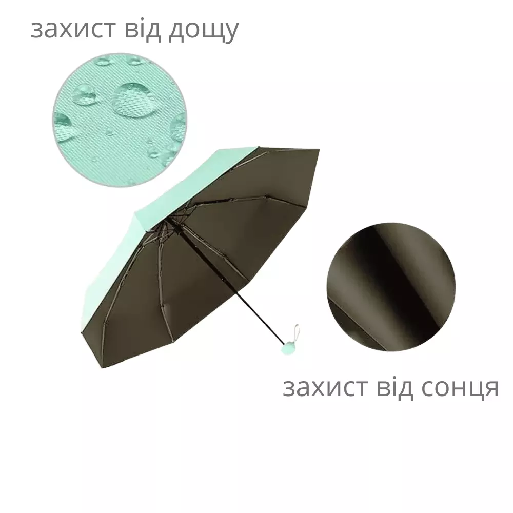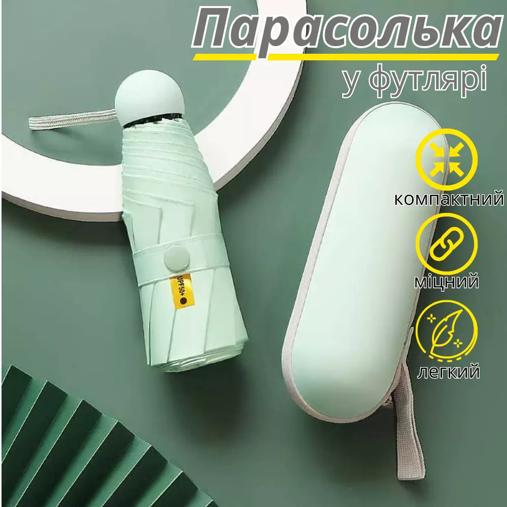 Парасолька механічна.Парасолька кишенькова від дощу і сонця.Міні-парасолька у футлярі на 8 спиць в чохлі колір світло-зелений