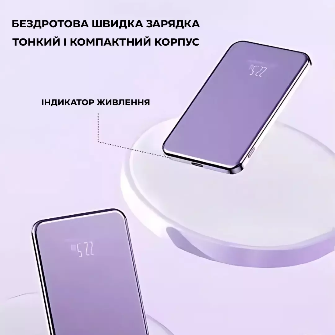 Компактний і стильний Powerbank з магнітною зарядкою ідеально